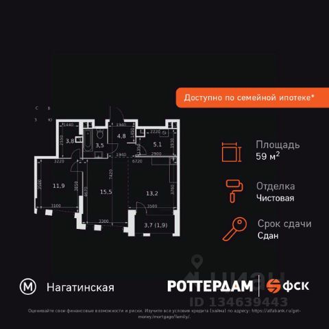 Продаётся просторная 2-комнатная квартира площадью 58,91 м², расположенная на 8 этаже корпуса 1.1 — идеальный выбор для тех, кто ценит эстетику высоты, панорамы города и современный премиум-класс. С декабря 2025 года совместно со Сбер действует ипотечная программа с фиксированной ставкой 13,9% на весь срок кредитования. Также для первой очереди строительства доступна программа рассрочки с комфортными фиксированными платежами от 60 000 рублей до конца 2026 года. Подробности — у менеджеров отдела продаж в онлайн-чате справа. Первый Нагатинский — самый крупный жилой квартал в локации, формирующий новый облик района и задающий стандарты городского премиум-класса. Проект сочетает продуманную архитектуру, премиальные общественные пространства и масштабную инфраструктуру, создавая среду, где вдохновение и удобство встречаются ежедневно. Транспортная доступность Находится в сердце Южного округа Москвы — районе с уже сложившейся и богатой инфраструктурой. Внешняя среда проекта усиливает комфорт жизни: рядом расположены зелёные парки, современные спортивные объекты, торговые центры и престижные образовательные учреждения. м. Нагатинская ~ 3 мин. МЦК Верхние котлы ~ 5 мин. Речной причал ~ 15 мин. ТТК ~ 10 мин. Садовое кольцо ~ 15 мин. Благоустройство премиального уровня Ландшафтные архитекторы бюро А4 создали систему взаимосвязанных пространств для отдыха, прогулок и гармонии. Уникальная wellness-зона вписана в природный ритм Москвы и формирует атмосферу спокойствия. • 10 000 зелёных насаждений • Японский сад • Зона у огня с биокамином • Зона у воды • Арт-тропа "Променад" • Воркаут-площадка • Гамаки для отдыха • Нетворкинг под открытым небом Инфраструктура нового поколения Квартал формирует современный формат городской жизни, объединяя приватность, удобство и пространство для развития. Всё расположено внутри проекта — без необходимости покидать территорию. • Скай-бар на 28 этаже • Гурме-вилла • Приватный СПА и фитнес премиум-класса • Тренажёрный зал и студии групповых тренировок • Хамам и финская сауна • Коворкинг-клуб • Клубный лаундж • Кинотеатр и сигарная комната • Музыкальная студия • Арт-зал с подиумом • Детские комнаты, игровые зоны и творческие студии • Круглогодичные детские площадки • Пляжный клуб на берегу Москвы-реки Образовательный кластер внутри квартала Внутри квартала созданы пространства для образования, творчества и игр, где дети могут развиваться, раскрывать таланты и чувствовать себя в безопасности — не покидая территории своего дома. Школа нового поколения на 1000 учеников Лучший детский сад в Москве с бассейном Тематическая детская площадка Гора Фудзияма и Большая волна