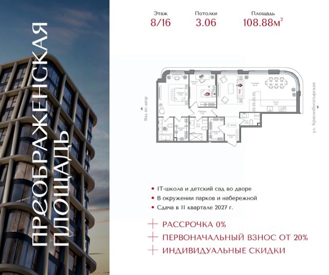 Рассрочка 0% с первоначальным взносом от 20% Квартира на 8 этаже в жилом комплексе премиум-класса "Преображенская площадь". Общая площадь: 72.8 кв.м. Проект премиум-класса в историческом районе Москвы. До метро "Преображенская площадь" 3 минуты пешком. Квартиры сдаются без отделки и в свободной планировке, чтобы жители могли оформить пространство с учетом своей индивидуальности. Высота потолков от 3,15м, широкоформатное остекление, 3-5 квартир на этаже. Система Умный дом. Дизайнерские лобби. Внутренний двор 1,5 га функциональное и безопасное пространство для игр, работы и занятий спортом. Пешеходный променад для прогулок. Дома переменной этажности. Есть подземный паркинг. Жилой комлекс находится в окружении парков Сокольники, Черкизовский, Измайловский, заповедника Лосиный остров и ВДНХ, а также вблизи пешеходной набережной. Комфортная удаленность от центра: 7 минут на автомобиле до ТТК, 8 минут до Садового кольца, 25 минут до Кремля.