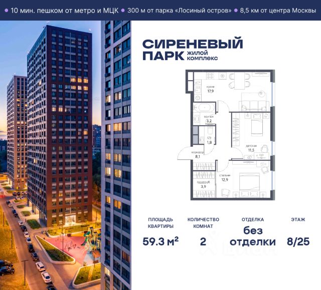 Продаётся просторная 2-комнатная квартира общей площадью 51.8 м² на 8 этаже в новом жилом комплексе "Сиреневый парк", расположенном в Восточном административном округе Москвы на улице Тагильская. Всего 10 минут ходьбы от станции метро "Бульвар Рокоссовского" и одноимённой платформы МЦК. Высококачественное монолитное строительство гарантирует сохранение тепла в доме, а наличие квартир с предчистовой и чистовой отделкой позволяет вам сэкономить время и сразу же переехать в свое жилье после покупки. Благодаря разнообразию планировок вы сможете выбрать идеальный вариант, соответствующий вашим предпочтениям и образу жизни. Предлагаются квартиры: - с просторными кухнями-гостиными, - с нишами для хранения вещей и отдельными гардеробными, - мастер-спальни с собственными санузлами, - большие комнаты с высокими потолками (2,9 м) и с увеличенными безопасными окнами (1,95 м) , которые наполнят ваш дом естественным светом; - с чистовой отделкой по двум дизайн-проектам на выбор; - с остекленными лоджиями и панорамными видами на лес. Каждая деталь в этом доме создана для вашего комфорта: - безбарьерная среда, - бесшумные скоростные лифты, - машиноместа в отапливаемом подземном паркинге и кладовые на -1 этаже с доступом из лифта, - развитая инфраструктура с супермаркетами, кафе, фитнес-клубами, салонами красоты и частным детским садом обеспечивает максимальное удобство жителям. В 300 метрах от ЖК расположен Национальный парк "Лосиный остров". Способы покупки: 100%, Рассрочка 0% от застройщика, Trade-in, Семейная ипотека без наценки, стандартная ипотека. Запишитесь на просмотр в офис продаж и получите свою персональную скидку по акции Назови свою скидку. ЖК "Сиреневый парк" — гармония в деталях, совершенство в каждом моменте. Застройщик проекта - AFI Development.