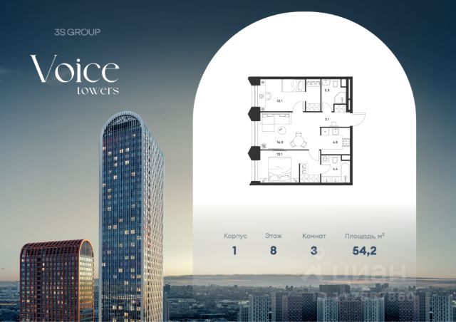 Ипотека от 3,5% на весь срок. Дополнительная скидка в офисе продаж! Продается уютная 2-комн. квартира площадью 44,4 кв.м на 8 этаже жилого комплекса бизнес-класса Voice Towers от 3S Group. Общая площадь: 44,4 кв.м., жилая: 28,7 кв.м., площадь кухни-гостиной: 14,7 кв.м., высокие потолки: 3,12 м., санузел совмещенный. О проекте: Voice. Высокие стандарты жизни Мы уверены, что высокие идеалы неизменно помогают достигать высот. Создавая Voice, мы ориентировались на людей с высокими требованиями к качеству и безупречным вкусом. Башни жилого комплекса, сочетают элегантную форму с динамичной геометрией фасадов, устремляются ввысь и отвечают самым высоким стандартам строительства. Технологичность, воплощенная в архитектуре - это ваш, собственный Voice. Преимущества локации Близость к метро Текстильщики, БКЛ и МЦК Новохохловская (10 мин) Рядом природный заповедник и конно-спортивная база Кузьминки-Люблино Будущее окружение Проект Южный порт - Текстильщики с деловым центром Сити-2 Небоскребы высотой до 300м Культурный центр с амфитеатром Променад вдоль Москвы-реки и яхт-клуб Архитектура Проект от Архитектурной мастерской Алексея Ильина Две перпендикулярные башни с арочными вершинами Высокая башня: светло-серый металл Низкая башня: терракотовая керамика Благоустройство Внешняя зона: парковки, магазины, кафе Внутренний двор: закрытая территория с озеленением Шумозащитный экран Сезонное озеленение Встречи на высоте Гранд-лобби высотой 8м Дизайнерская мебель Умные скоростные лифты Услуги Детский центр с игровой зоной Фитнес-студия для жителей
