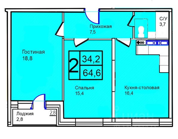 Продаётся 2-комнатная квартира в строящемся доме (Корпус 2), срок сдачи: IV-кв. 2027, общей площадью 64.6 кв.м., на 8 этаже.