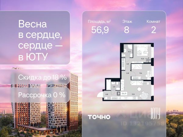 Скидка до 18% в апреле на выделенный пул лотов! ЮТУ — камерный проект бизнес-класса с исключительной архитектурой, видовыми квартирами и подходом к большой благоустроенной набережной канала имени Москвы. Проект создает идеальный баланс жизни в городе. Это приватный оазис, где в любой момент можно сменить обстановку и выбрать любой из тысячи маршрутов к активному отдыху и ярким впечатлениям. Удачное месторасположение: • Первая линия в прибрежной части Химкинского водохранилища • Исключительно тихий и зелёный район Южное Тушино • За 2 минуты можно спуститься к воде, за 10 минут найти зеленые парки и готовую инфраструктуру, за 30 минут доехать до Кремля Концепция проекта: • Две футуристичные башни, соединенные торговой галереей от бюро ATRIUM • 60 неповторяющихся планировок: квартиры с угловым панорамным остеклением, мастер-спальнями и гостиными до 39м², а также просторные квартиры площадью до 128,6 м² Чувство эксклюзивности: • Своя приватная жилая экосистема только для резидентов домов • Лаунж-терраса на крыше • В проекте предусмотрен закрытый двор-парк. Прогрессивные технологии: • 3-х уровневая система безопасности (Face ID, BLE-метки, видеонаблюдение) • Умный паркинг с распознаванием номеров Проект федерального девелопера ТОЧНО, который входит в ТОП-5 девелоперов России по объемам строительства.