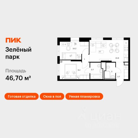• ✅ Минимальная площадь: 46,7 м²