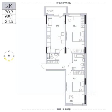Продаётся 2-комнатная квартира в сданном доме (Корпус 13), срок сдачи: IV-кв. 2023, общей площадью 68.3 кв.м., на 9 этаже. Расположение, транспортная доступность Жилой комплекс комфорт-класса "Пироговская Ривьера" возводится на обширном участке в 49 га строительной компанией Rezidential Group и будет представлять собой мини-квартал из 20 6-9-тиэтажных монолитных корпусов. Квартал строится всего лишь в 10 км от МКАД (если ехать по Осташковскому шоссе). Общественный транспорт останавливается в 100 метрах от ЖК "Пироговская Ривьера". До ближайшей станции метрополитена "Медведково" около 25 минут на транспорте, который ходит еще до 4 станций подземки (расстояние примерно одинаковое для всех станций): "Алтуфьево", "Свиблово, "Бабушкинская", "Бибирево"". Инфраструктура В ЖК "Пироговская Ривьера" это комфортный для жизни мини-квартал со своими собственными инфраструктурными объектами: • два дошкольных детских учреждения на 450 мест (одно муниципальное, второе частное); • общеобразовательная школа на 750 учащихся; • 4 крытых наземных парковки на 3400 машиномест для хозяев, гостевые стоянки на 1343 автомобилей; • физкультурно-оздоровительный комплекс со своей школой олимпийских резервов; • взрослая и детская поликлиники; • торгово-развлекательный центр с кинотеатром и т.д. Территория ЖК "Пироговская Ривьера" будет полностью благоустроена. Здесь оборудуют: • многофункциональные игровые детские и спортплощадки; • пляжи и прочие зоны отдыха; • беговые и велосипедные дорожки протяженностью 7 км; • зеленые зоны. Доступ на жилой участок ЖК "Пироговская Ривьера" будет ограничен. По периметру его территория ограждена, работает круглосуточное видеонаблюдение, охраняет жильцов профессиональная служба безопасности. Примерно в двух километрах от комплекса расположены школы, детские сады, поликлиника, больница, а из торговых объектов супермаркеты "Пятерочка" и "Монетка". Экологическая ситуация в этой местности благополучная. Поблизости находится Пироговское водохранилище, а также лесопарковая зона в некоторых квартирах окна будут выходить именно на нее. Надежность застройщика Застройщиком ЖК "Пироговская Ривьера" выступает Rezidental Group перспективная компания, вошедшая на строительный рынок в 2013 году. Основное направление деятельности организации девелоперское, а портфолио ее уже насчитывает ряд крупномасштабных объектов, в числе которых торговые и офисные здания различных архитектурных планировок. Компания предоставляет аудитории обширный выбор профессиональных сервисов, в том числе: брокерские услуги, реализацию строительных проектов и управление ими. Работа Rezidental Group получила признание и весьма высокую оценку не только у клиентов, но и в среде профессионалов в сфере строительства. Компания быстро развивается и расширяет сегмент своих коммерческих интересов. Архитектура Все 20 корпусов ЖК "Пироговская Ривьера" строятся по монолитной технологии с фасадом, облицованным полированным кирпичом типа "Лунный камень". Швы у