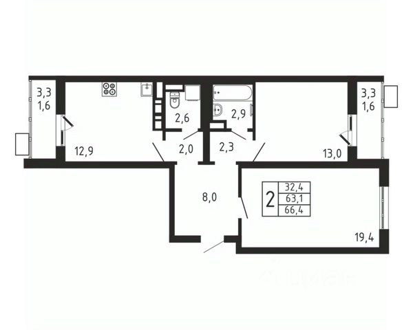 Прямая продажа от девелопера. В жилом квартале комфорт-класса "Новое Пушкино" (девелопер Ingrad) продаётся 2-спальная квартира площадью 55.80 кв.м без отделки. Квартира расположена на 9 этаже 14-этажного дома, корпус 23. Расположение и окружение: Жилой квартал "Новое Пушкино" расположен в экологичном городе Пушкино. Рядом с кварталами расположены: Северный лесопарк - 650 м, пушкинский ЦПКиО - 1 км, дендрарий - 1 км, ферма-экопарк "Птичник" - 1,2 км, парк "Серебрянка" вдоль одноимённой реки - 3,5 км. В окрестностях есть большие водоёмы и лесные массивы, где можно загорать, плавать и наслаждаться пикником на берегу. Отличная транспортная доступность: До Ярославского шоссе, по которому можно добраться до МКАД, всего 3 км. Важным пунктом развития инфраструктуры станет строительство Мытищинской хорды (Северного дублёра МКАД). Железнодорожные станции Заветы Ильича и Пушкино расположены в 1,5 км и 3 км.. Инфраструктура: "Новое Пушкино" - новый "5-минутный город" с собственной развитой инфраструктурой, где всё необходимое находится в пределах пяти минут пешей прогулки. Район уже полностью сложился: социальные и сервисные объекты функционируют, обеспечивая жителям высокий уровень комфорта и удобства. В нём уже построено 29 домов, работают два детских сада и школа. Свой прогулочный бульвар протяжённостью более 500 м располагает пространствами для отдыха, занятий спортом и встреч с друзьями. Здесь есть велосипедные дорожки, воркаут-зоны, теннисные столы и детские площадки. На первых этажах домов открыты кафе, магазины и сервисы, которые упрощают повседневные дела. Запланировано строительство торгового центра.