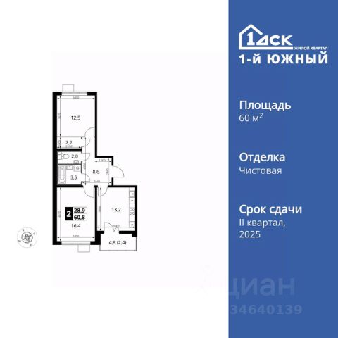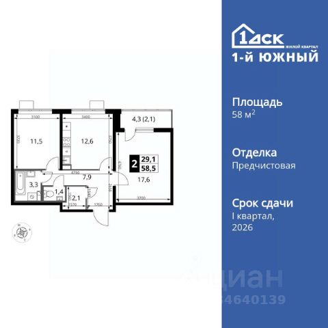Прямая продажа от застройщика! Жилой Комплекс класса Комфорт Плюс. Продаётся 2-к квартира номер 125 общей площадью 57.7 кв.м. на 9-м этаже 25 этажного здания. Отделка Whitebox. Цена с учётом скидки. Особенности квартиры: - МЦД-5 в пешей доступности - Квартал с южным садом - Свои 3 детских сада и 2 большие школы - Распашная планировка - отличное сочетание удобства и свободы. - Раздельный санузел - больше удобства для всех членов семьи. - Линейная кухня - функциональность и практичность в одном решении. - Гардеробная - удобство для хранения и организации вещей. - Лоджия - уютное место для отдыха и тишины. Квартира с предчистовой отделкой (White box). Вам не придется заниматься черновыми и трудоёмкими работы, а чистовую отделку и дизайн - сделайте на свой вкус. Информация о комплексе: Одно из преимуществ проектов 1- ДСК большие застекленные лоджии. Другое преимущество честный евро-формат. Во всем проекте предусмотрена система Умный дом. В состав устанавливаемого пакета устройств входит: WiFi реле для управления группами потребителей, беспроводной кран перекрытия с эл. приводом, беспроводной сенсор протечки, Яндекс Станция Мини. Его расположение можно назвать удачным за счет транспортной доступности и близости к природным объектам. По соседству лес, а в каждом дворе плодовые деревья. Весной квартал окутывает бело-розовое облако: это цветут яблони, груши, сливы. К августу в воздух наполняется ароматом созревших плодов. Зимой среди покрытых инеем деревьев протянулась лыжня. Транспортная доступность: - Общественный транспорт: Действующая ж/д станция Булатниково (в перспективе будущая МДЦ D5) в пешей доступности, всего 10-12 минут. - Личный автотранспорт: Удобный выезд на трассу М4-Дон в сторону Москвы и области 850 м, до МКАД - 1 км Внутренняя инфраструктура: Красивые продуманные подъезды - еще одно преимущество проекта 1-й Южный. Вход в сквозные подъезды есть и с улицы, и со двора. Благодаря сплошному остеклению в них всегда светло и уютно. Подъезды расположены на уровне земли, поэтому и молодым родителям с коляской, и жильцам с ограниченными возможностями вход и выход неудобств не доставят. В помещении предусмотрено место под стойку ресепшен с выводом инженерных сетей. Если жильцы решат на общем собрании, что необходим охранник или консьерж, организовать для них рабочее место можно быстро и с минимальными затратами. В подъездах предусмотрены уборные для детей и взрослых. Колясочные в каждом подъезде позволяют поддерживать порядок и чистоту на этажах. На случай прогулки с четвероногим питомцем в непогоду в подъездах устроены лапомойки. Во дворах и на общественных территориях 1-ого Южного столько всего интересного для юных обитателей. Собственные 3 детских сада и 2 больших школы буквально под окнами Изюминка проекта - пешеходный бульвар-дендрарий, он идеален для семейных прогулок. По сторонам прогулочной зоны разместились точки для самых разнообразных активностей. Центральная площадь на бульваре предназначена д