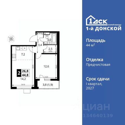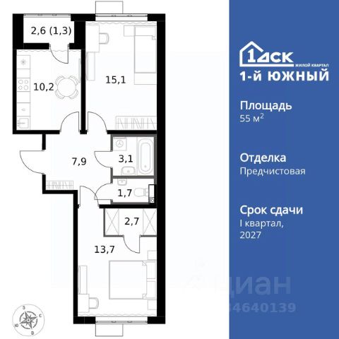Прямая продажа от застройщика! Жилой Комплекс класса Комфорт Плюс. Продаётся 2-к квартира номер 438 общей площадью 52.2 кв.м. на 9-м этаже 24 этажного здания. Отделка Whitebox. Цена с учётом скидки. Особенности квартиры: - МЦД-5 в пешей доступности - Квартал с южным садом - Свои 3 детских сада и 2 большие школы - Линейная планировка - максимальная функциональность и удобство. - Раздельный санузел - больше удобства для всех членов семьи. - Линейная кухня - функциональность и практичность в одном решении. - Гардеробная - удобство для хранения и организации вещей. - Лоджия - уютное место для отдыха и тишины. Квартира с предчистовой отделкой (White box). Вам не придется заниматься черновыми и трудоёмкими работы, а чистовую отделку и дизайн - сделайте на свой вкус. Информация о комплексе: Одно из преимуществ проектов 1- ДСК большие застекленные лоджии. Другое преимущество честный евро-формат. Во всем проекте предусмотрена система Умный дом. В состав устанавливаемого пакета устройств входит: WiFi реле для управления группами потребителей, беспроводной кран перекрытия с эл. приводом, беспроводной сенсор протечки, Яндекс Станция Мини. Его расположение можно назвать удачным за счет транспортной доступности и близости к природным объектам. По соседству лес, а в каждом дворе плодовые деревья. Весной квартал окутывает бело-розовое облако: это цветут яблони, груши, сливы. К августу в воздух наполняется ароматом созревших плодов. Зимой среди покрытых инеем деревьев протянулась лыжня. Транспортная доступность: - Общественный транспорт: Действующая ж/д станция Булатниково (в перспективе будущая МДЦ D5) в пешей доступности, всего 10-12 минут. - Личный автотранспорт: Удобный выезд на трассу М4-Дон в сторону Москвы и области 850 м, до МКАД - 1 км Внутренняя инфраструктура: Красивые продуманные подъезды - еще одно преимущество проекта 1-й Южный. Вход в сквозные подъезды есть и с улицы, и со двора. Благодаря сплошному остеклению в них всегда светло и уютно. Подъезды расположены на уровне земли, поэтому и молодым родителям с коляской, и жильцам с ограниченными возможностями вход и выход неудобств не доставят. В помещении предусмотрено место под стойку ресепшен с выводом инженерных сетей. Если жильцы решат на общем собрании, что необходим охранник или консьерж, организовать для них рабочее место можно быстро и с минимальными затратами. В подъездах предусмотрены уборные для детей и взрослых. Колясочные в каждом подъезде позволяют поддерживать порядок и чистоту на этажах. На случай прогулки с четвероногим питомцем в непогоду в подъездах устроены лапомойки. Во дворах и на общественных территориях 1-ого Южного столько всего интересного для юных обитателей. Собственные 3 детских сада и 2 больших школы буквально под окнами Изюминка проекта - пешеходный бульвар-дендрарий, он идеален для семейных прогулок. По сторонам прогулочной зоны разместились точки для самых разнообразных активностей. Центральная площадь на бульваре предназначена