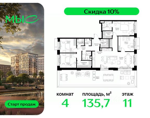 Прямая продажа от застройщика. Продаётся 2-комнатная квартира общей площадью 82.27 м² без отделки в премиальном жилом комплексе "МЫС" на 9-м этаже 12 этажного дома. Квартира расположена в корпусе "Сибирь". Проект МЫС — это, прежде всего, идеальное место для семей. В рамках проекта построят государственную школу, два детских сада и дворец спорта площадью 20 000 м2 с термальным комплексом, выплывным бассейном, фитнес-залом, теннисными, сквош и падел кортами и секциями для детей. На территории площадью, сравнимой с тремя парками Зарядье, появятся кафе и рестораны, пруд с набережной, спортивные и детские площадки, скейт-парк, лыжные и веломаршруты. Расположение: - 2 минуты до скоростной трассы М1 и Минского шоссе; - 10 минут до МКАД; - 15 минут до МЦД Лесной Городок - 20 минут до делового центра "Москва-Сити"; - 28 минут до аэропорта "Внуково". Благоустройство: - велосипедные и лыжные маршруты; - собственная набережная и парк; - лаунж-зоны в окружении природы; - беседки у очага; - дворец спорта площадью 20 000 м²; - термальный комплекс с тремя бассейнами; - 4 теннисных и падел-корта; - 6 сквош-кортов; - многофункциональный спортзал; - скейт-парк; - просторная площадь для прогулок с фонтаном; - детский клуб с творческими секциями; - гастро-доминанта; - кафе у пруда, рестораны, ритейл. Окружение - соседство с лесным фондом; - школа на 1250 мест и 2 детских сада на 350 и 255 мест; - Дубковский и Подушкинский леса, парк "Рассказовка", Мещерский парк. Действуют специальные условия при 100% оплате, подробности уточняйте у менеджера в офисе продаж.
