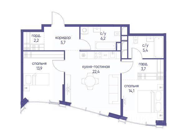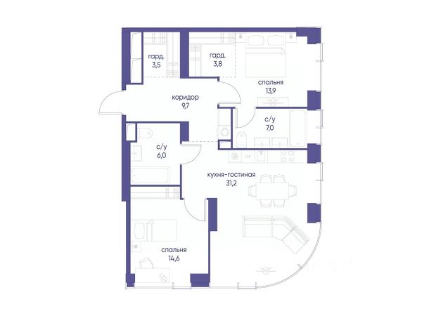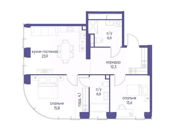 Просторная светлая квартира площадью 86,9 кв. м с окнами на южной и восточной сторонах. Панорамное остекление улучшает видовые характеристики квартиры. Продуманная планировка позволяет разместить две спальни. Мастер-спальня с отдельными гардеробной и санузлом, в котором предусмотрено окно. Life Time - роскошный современный квартал на Пресне, в наиболее быстро растущем премиальном районе ЦАО. Его насыщенная инфраструктура и выгодное расположение дарят время для жизни. Вы больше не тратите его на дорогу или ожидание, при этом ни в чём себе не отказывая. На территории предусмотрено всё для комфортной жизни: • двор-парк площадью 1,8 гектара с прудом и фонтанами; • Clubhouse - инфраструктурный центр в отдельном здании с исчерпывающими возможностями для спорта, отдыха и досуга только для жителей; • спортивная инфраструктура на улице и в помещении, в том числе бассейн длиной 25 метров, хот-таб, хаммам, сауна, бьюти-зона; • клубная гостиная с террасой; • всё для развития и досуга детей любого возраста, в том числе детский сад и школа. Life Time находится в центре сложившегося премиального района, в окружении многочисленных парков. Удобная транспортная доступность и прямой выезд на Звенигородское шоссе позволяют без проблем добраться до Садового кольца и Москва-Сити. Архитектурный стиль квартала - роскошный минимализм. Дома десятилетиями будут выглядеть современно.