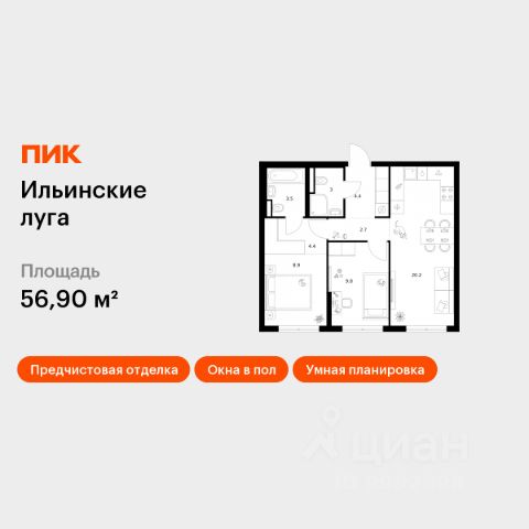 Продаётся 2-комн. квартира площадью 50,92 кв.м на 9 этаже 9 этажного дома (Корпус 4.2, Секция 4) проекта ПИК Ильинские луга. Светлый просторный подъезд на уровне земли, функциональная планировка, большие окна, предчистовая отделка. Жилой район "Ильинские луга" находится в 10 километрах от МКАД по Новорижскому шоссе, в 20 минутах на автомобиле от станций метро "Волоколамская", "Тушинская" и "Строгино". В будущем ближе к проекту, в 9 минутах пути на машине, откроется станция "Ильинская" Рублёво-Архангельской линии, которая будет соединять Арбатско-Покровскую линию и Большую кольцевую линию. Сейчас в квартале начались продажи в корпусах 3.2, 3.3, 3.4, 3.5 и 3.6. "Ильинские луга" — масштабный проект, в который входит девять детских садов, четыре школы и поликлиника. Он строится в престижном и экологичном районе среди лесов и памятников природы. За 5 минут от жилого квартала можно доехать до Рублёво-Успенского шоссе, а за 30 минут — до центра Москвы. До крупного торгового центра "РИГАМОЛЛ" всего 5 минут на автомобиле, а до ТЦ "Твой дом" и гипермаркета "Глобус" — 10 минут. В "Ильинских лугах" строятся только девятиэтажные дома — такая архитектура соответствует спокойной жизни за городом. В каждом дворе-парке есть места для отдыха, детские и спортивные площадки. А ещё, здесь уже открыт большой PlayHub "Гравити" — современное игровое пространство с космической тематикой, холмами, зонами для игр и отдыха жителей любого возраста. На первых этажах уже работают магазины, кафе и пекарни. Места для отдыха от "Ильинских лугов" тоже недалеко: 10 минут на машине — и вы в музее-усадьбе "Архангельское". Также рядом находится Лохин остров — памятник природы, где водятся речные черепахи, есть места для кемпинга и возможность сплавиться по реке. Артикул 1015579 (Застройщик ООО "СЗ "ГРАДОЛИМП")