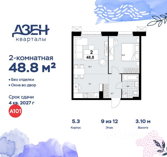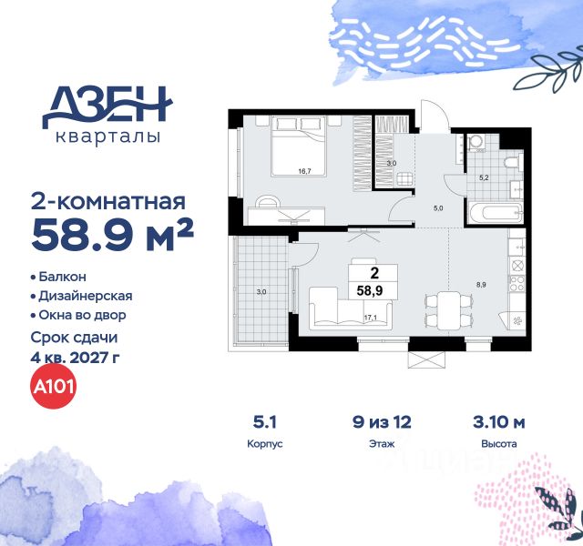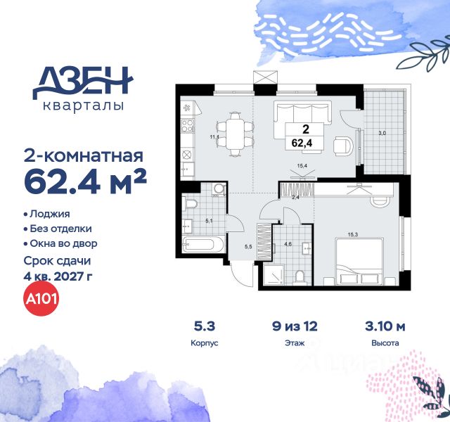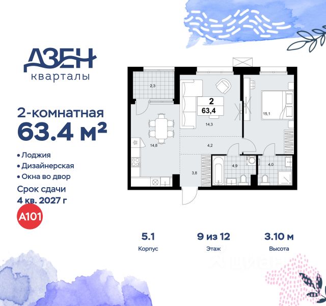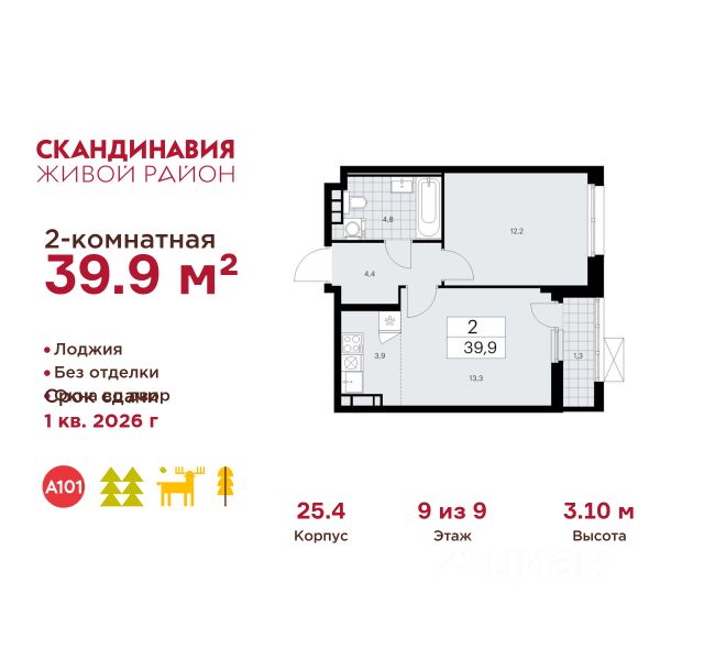 Продаётся 2-комн. квартира площадью 58 кв.м на 9 этаже 16 этажного дома (Корпус 2.6/1.1, Секция 1) проекта ПИК Бунинская набережная. Светлый просторный подъезд на уровне земли, функциональная планировка, большие окна, c отделкой. Удобное расположение: 18 минут пешком от м. "Потапово" и 12 минут на автомобиле до станции "Бунинская аллея". 12 минут на автомобиле до трассы Солнцево — Бутово — Варшавское шоссе. 20 минут на автомобиле до МКАД и Калужского шоссе. 1520 минут езды до живописных парков: "Бутовский лесопарк", заказник "Южное Бутово". Особенности проекта Камерный квартал в Новой Москве, на берегу Ивановского пруда. Одна из ключевых особенностей проекта — квартиры с панорамным видом на воду. Архитекторы вдохновились локацией проекта: природные оттенки и активная пластика корпусов напоминают рельефные выступы на берегу, а окна отражают водную гладь, визуально объединяя дома с природой. Преимущества проекта Светлые и просторные лобби с зонами ожидания. Подземный паркинг. Набережная и пешеходная аллея для прогулок. Парк на склоне с игровой зоной. Готовая инфраструктура района: 3 школы, 6 детских садов, взрослая и детская поликлиники. Артикул 968387 (Застройщик ООО СЗ "Стройком")