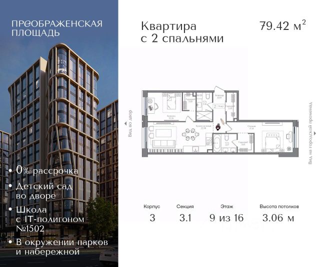 • корпуса расположены так, чтобы из окон открывались потрясающие виды на закаты и рассветы, зеленые панорамы или огни мегаполиса;