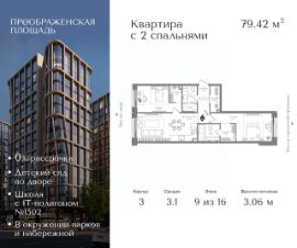 Рассрочка 0% от застройщика. Первоначальный взнос от 20%. Предложение действует до 31 января 2026 года Стоимость указана с учетом скидки 5%. Квартира на 9 этаже в жилом комплексе премиум-класса "Преображенская площадь". Общая площадь: 62.74 кв.м. Проект премиум-класса в историческом районе Москвы. До метро "Преображенская площадь" 3 минуты пешком. Квартиры сдаются без отделки и в свободной планировке, чтобы жители могли оформить пространство с учетом своей индивидуальности. Высота потолков от 3,15м, широкоформатное остекление, 3-5 квартир на этаже. Система Умный дом. Дизайнерские лобби. Внутренний двор 1,5 га функциональное и безопасное пространство для игр, работы и занятий спортом. Пешеходный променад для прогулок. Дома переменной этажности. Есть подземный паркинг. Жилой комлекс находится в окружении парков Сокольники, Черкизовский, Измайловский, заповедника Лосиный остров и ВДНХ, а также вблизи пешеходной набережной. Комфортная удаленность от центра: 7 минут на автомобиле до ТТК, 8 минут до Садового кольца, 25 минут до Кремля.