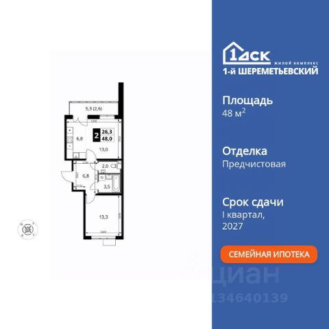Прямая продажа от застройщика! Жилой Комплекс класса Комфорт Плюс. Продаётся 2-к квартира номер 371 общей площадью 53.8 кв.м. на 9-м этаже 16 этажного здания. Отделка Whitebox. Цена с учётом скидки. Особенности квартиры: - Просторная спальня, в которой можно разместить большую кровать. - Распашная планировка - отличное сочетание удобства и свободы. - Увеличенная ширина окна/окон - больше света и визуального простора. - Раздельный санузел - больше удобства для всех членов семьи. - Можно оборудовать 2 или более рабочих места - пространство для нескольких человек. - Можно оборудовать рабочее место - комфорт для работы и учёбы. - Линейная кухня - функциональность и практичность в одном решении. - Гардеробная - удобство для хранения и организации вещей. - Лоджия - уютное место для отдыха и тишины. Квартира с предчистовой отделкой (White box). Вам не придется заниматься черновыми и трудоёмкими работы, а чистовую отделку и дизайн - сделайте на свой вкус. Информация о комплексе: ЖК 1-й Шереметьевский расположен в самом центре Подрезково, от него всего 6 минут пешком до одноименной станции ж/д и планируемой к открытию МЦД-3. В комплексе яркие и уютные, лобби, большая колясочная, лапомойка. Благодаря гостевому санузлу на 1 этаже прогулки станут по-настоящему долгими. Два лифта пассажирский и грузовой.Во всех корпусах 1-го Шереметьевского там устроены кладовые, а в корпусах 3-5 есть подземный паркинг. В ЖК 1-й Шереметьевский разнообразие площадей и планировок. Большие кухни-гостиные: в них два окна или больше. Во всех квартирах площадью от 40 кв.м. и выше спроектировано 2 санузла. Большие остекленные лоджии с отделкой. Система Умная квартира, реализованная в 1-м Шереметьевском. В каждой квартире установлены датчики протечек и запорные вентили с электроприводом, которые самостоятельно перекрывают воду в случае аварии. Мобильное приложение управляет группами электропотребителей: даже если вы забыли утюг включенным, можно обесточить его дистанционно. Транспортная доступность: - Общественный транспорт: До ближайших станций метро Планерной и Войковской около 40-50 минут на автобусе. 6 минут до ЖД станции Подрезково (МЦД-3) - Личный автотранспорт: Удобный выезд на Ленинградское шоссе позволяет быстро добираться до МКАДа и в центр Москвы, до платной трассы М11 и в аэропорт Шереметьево. 3 минуты до Ленинградского ш. 10 минут до платной трассы М11 15 минут до МКАД 20 минут до ст. м Войковская 25 минут до ст. м Планерная Внутренняя инфраструктура: 1-й Шереметьевский не только сокращает время, которое вы будете проводить в дороге. Но и предпринимает многое, чтобы вы меньше ездили и чаще ходили. На первых этажах корпусов разместятся фрешмаркеты и пункты выдачи маркетплейсов, салоны красоты и химчистки, кофейни и пекарни всё, что необходимо изо дня в день, но не заслуживает отдельной поездки на машине или такси. В квартале будут построены собственные школа и детский сад. Школа рассчитана на 1100 учени