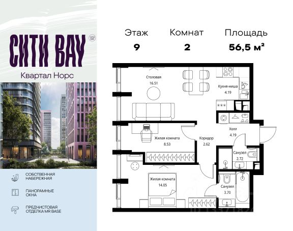 Продаётся 2-комнатная квартира 62.2 м². В жилом районе Алиа на 9-м этаже 12-этажного дома. Жилой район Алиа — это дома бизнес-класса у слияния Москвы-реки и Сходни. Алиа находится в Покровском-Стрешневе, экологически чистом районе на престижном северо-западе столицы. Район возводится на бывшей территории Тушинского аэрополя, где никогда не было промышленного производства. Алиа — это район разностороннего развития, спроектированный по принципу WORK.LIVE.PLAY.LEARN. Это "15-минутный город", где вся необходимая для комфортной жизни инфраструктура — на расстоянии приятной прогулки. У района удобное расположение: отсюда меньше 10 минут пешком до станций метро "Спартак" и "Тушинская" и всего полчаса на автомобиле до центра города или аэропорта Шереметьево. Архитектурную концепцию Алиа разработало бюро SOM (Skidmore, Owings & Merrill), авторы знаменитой "Бурдж-Халифа". В Алиа больше 140 планировочных решений, среди которых — редкие для Москвы форматы: квартиры с окном в ванной, пентхаус, сити-юниты и таунхаусы. Почти половина территории района отдана под благоустройство. В Алиа три парка: Линейный парк с кафе и магазинами, Центральный парк с амфитеатром, сухим фонтаном и большим плейхабом для детей всех возрастов и Прибрежный парк на собственной набережной, одной из самых длинных в Москве. В каждом урбан-блоке — закрытый внутренний двор с гипоаллергенными растениями и детской площадкой. В лобби каждого жилого корпуса в Алиа оборудована зона ожидания, колясочная, гостевой санузел и лапомойка для домашних животных. За стойкой ресепшена резидентов и их гостей встречает консьерж. Центральное лобби урбан-блока — это стильное общественное пространство с коворкингом, лаундж-зоной и кофе-пойнтом. Это "вторая гостиная" жителей урбан-блока и одно из мест, где формируется комьюнити Алиа. Два ключевых объекта инфраструктуры в Алиа — это спорткомплекс "Чкалов Арена", где представлены 25 видов спорта, и самый большой в стране бизнес-парк класса A, благодаря которому району обеспечено быстрое развитие.