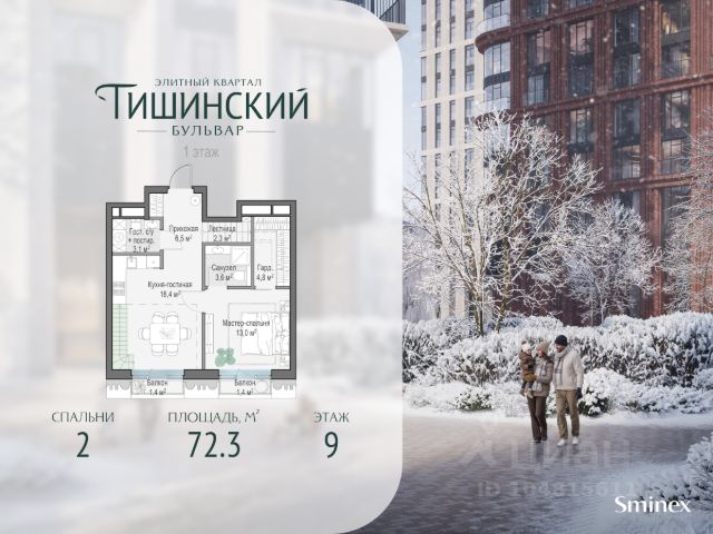 В продаже 2-комнатная квартира квартира в элитном квартале "Тишинский бульвар". Общая площадь квартиры - 64.50 кв.м. Этаж 9 из 14. Корпус К4С1. "Тишинский бульвар" - тихий зелёный элитный квартал на Тишинке, в престижном и комфортном районе центра Москвы. В нём создан уникальный для элитного дома прогулочный бульвар в своём огромном парке 1,9 га. В парке оборудованы зоны для активного и тихого отдыха, крытые галереи, приватные зелёные комнаты, многофункциональная спортивная площадка, воркаут-зона, детская площадка, сухой фонтан, ручей. В пешей доступности Римско-католический кафедральный собор. Всего в полутора километрах от квартала находятся Патриаршие пруды - излюбленное место для летних прогулок, воскресных бранчей и романтических ужинов. Белая площадь расположена ещё ближе - на расстоянии 1,2 километра. Это точка концентрации деловой жизни и модных ресторанов. В "Тишинский бульваре" только для жителей и их гостей создан уникальный для элитного дома прогулочный бульвар в собственном огромном парке площадью 2,1 га, который занимает 70% территории квартала. Бульвар проходит через весь квартал и объединяет в общее пространство три двора: Кленовый, Рябиновый и Ивовый. В парке созданы крытые галереи и приватные зелёные комнаты для отдыха и медитаций в любую погоду. Насыщенное озеленение многолетними растениями с разными периодами цветения сохраняет территорию квартала красивой круглый год. В квартале насыщенная инфраструктура только для жителей, включая Clubhouse. Здесь оборудованы пространства для здорового образа жизни по стандарту FIT LAB: в парке - многофункциональная спортивная площадка, воркаут-зона, место для занятий йогой и медитации; бесплатный фитнес-клуб с бассейном. Для маленьких жителей доступны детская площадка и игровая комната по стандарту KIDS LAB. Дома оснащены самыми полными и лучшими системами.