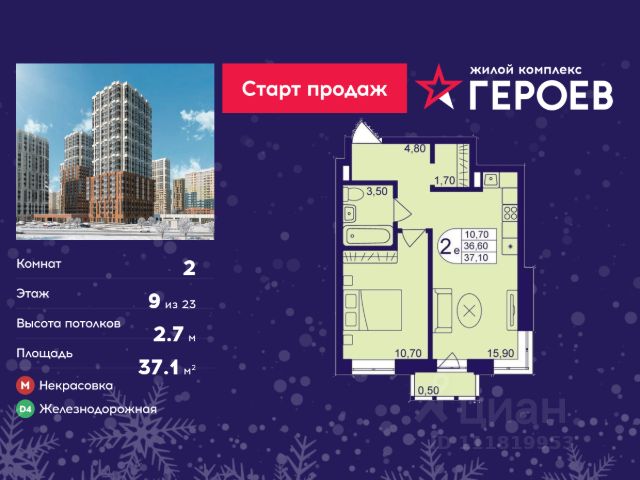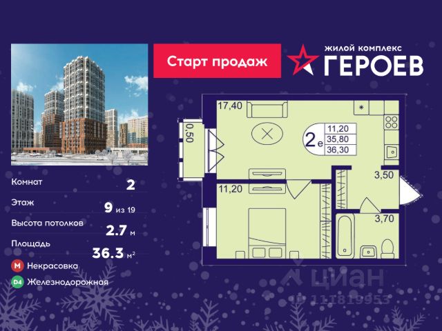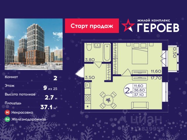 Продаётся 2-комнатная квартира в формате евро 35.30 кв. м. в жилом комплексе "Героев" в Балашихе, Железнодорожный. Квартира расположена на 9 этаже 410 корпуса. В наличии квартиры с отделкой. Всего 40 минут до центра Москвы. При покупке квартиры в сданном доме ключи выдаются сразу! Жилой квартал "Героев" - это уютный проект для семей с детьми. В квартале созданы все условия для досуга всех возрастов: игровые и спортивные площадки, места для отдыха и прогулочные зоны. За 15 минут можно дойти от дома до Ольгинского лесопарка, популярного места для отдыха на свежем воздухе. На территории жилого комплекса уже открыт детский сад на 250 мест и началось строительство еще одного - для 220 малышей, а также школы для 1320 учеников. Рядом работают магазины, кафе, супермаркеты, пункты выдачи. Преимущества: • В уютных светлых квартирах с просторными кухнями-гостиными удобно встречать гостей и проводить время наедине друг с другом. • Благодаря увеличенному остеклению в комнатах много света. • Квартиры продаются с отделкой, можно заселяться сразу после получения ключей.