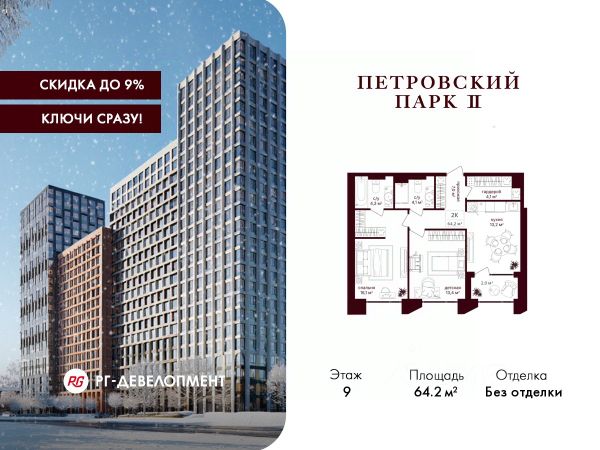 Дом сдан. Ключи в день покупки! В продаже 2-комнатная квартира площадью 69.70 м² с предчистовой отделкой на 9 этаже 49 этажного дома в корпусе Кристал. ЖК Симфония 34 - концептуально новый жилой комплекс премиум-класса с подземной парковкой, состоит из четырех башен высотой 36 - 54 этажа. Квартиры сдаются с базовой (предчистовой) отделкой MR BASE или дизайнерской чистовой отделкой MR READY. Высота потолков 3 - 6 метров, окна высотой до 2,6 м. Более 100 кладовых в подземной части ЖК и более 500 на этажах. Безопасность - Система контроля входа на территорию комплекса, биометрия - Система автоматического водяного пожаротушения и противопожарного водопровода, система пожарной вентиляции - Доступ на парковку при помощи системы распознавания автомобильных номеров, карточка для контроля доступа резидентов - Система видеонаблюдения - Круглосуточная связь через приложение, телефон, голосовые сообщения с охраной, консьержем, call-центр. Расположение Пешком - 6 минут до метро "Дмитровская" - 15 минут до Тимирязевского парка На машине - 5 минут до Савеловского вокзала и Аэроэкспресса в Шереметьево - 10 минут до Москва-Сити и Садового кольца Благоустройство - 70% территории отведены под зеленые насаждения и ландшафтный дизайн - Приватный Японский сад - Детские площадки с зонированием по возрасту - Clubhouse для резидентов - Wellness & SPA - Зона для пикника, зона с гамаками - Центральное лобби, ресторан, коммерческие помещения - Дополнительный вход/выход на территорию комплекса Окружение - В 10 минутах от Симфония 34 находится дизайн-завод Flacon, где регулярно проходят культурно-образовательные и развлекательные мероприятия - Тимирязевский парк расположен в 850 м. Площадь парка 232 га - Рядом расположен парк "Дубки", площадью 16,5 га. - В 15 минутах расположен Хлебозавод 9. Здесь находятся шоурумы брендов, кафе разных кухонь мира, образовательные проекты и площадки для мероприятий Компания MR предлагает своим клиентам специальные условия приобретения квартир в рамках программ ипотечного кредитования от банков-партнеров.