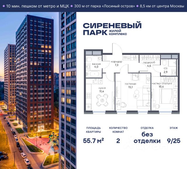Продается 2-комнатная квартира в ЖК "НАЗАРЕ'" Общая площадь - 52.50 Тип дома - монолитный Этаж - 9 Год сдачи - 2028 Предлагается квартира площадью 52.50 кв. м в новом современном квартале на востоке Москвы, прямо у станций метро и МЦК "Бульвар Рокоссовского". Квартира располагается в корпусе 5 на 9 этаже комплекса бизнес-класса "НАЗАРЕ'". Великолепная транспортная доступность: • 2 минуты ходьбы до метро и МЦК "Бульвар Рокоссовского"; • 3 минуты на авто - удобный выезд на СВХ (МСД); • 10 минут на авто до национального парка "Лосиный остров"; • 10 минут на авто до "Измайловского парка"; • 15 минут до авто до парка "Сокольники"; • 15 минут занимает выезд на ТТК, • 18 минут на авто до Садового кольца. Индивидуальная архитектура в современном стиле: • шесть башен переменной высотности от 24 до 43 этажей, в том числе одна высотная 143-метровая доминанта, которая станет достопримечательностью востока Москвы; • авторы архитектурной концепции - знаменитое бюро СПИЧ (среди их работ - башня "Федерация", новое здание Третьяковской галереи, реконструкция БСА "Лужники" и др.); • торгово-развлекательный комплекс с фитнес-центром, детской игровой комнатой и открытыми террасами прямо возле квартала; • дизайнерские лобби от бюро ABOVE ARCHITECTURE с панорамными окнами, интерьерами в теплой цветовой гамме и мягкой зоной ожидания располагаются в каждой башне; • корпуса расположены так, чтобы из окон открывались потрясающие виды на закаты и рассветы, зеленые панорамы или огни мегаполиса; Особенности расположения "НАЗАРЕ'" находится максимально близко к метро, и в то же время проект вписан в уже существующую инфраструктуру зеленого столичного района Богородское. Это обеспечивает быстрый доступ ко всем нужным объектам инфраструктуры (детские сады, школы, медцентры, магазины, салоны красоты, фитнес-клубы, футбольные поля, спортивные школы), а также к живописным зеленым зонам - национальному парку "Лосиный остров", парку "Сокольники", Черкизовскому детскому парку, Измайловскому лесопарку с усадьбой Измайлово. Собственная инфраструктура и благоустройство Шесть башен квартала будут объединены цокольным этажом, в который можно попасть как с улицы, так и со стороны лобби. Здесь разместятся необходимые для комфортной повседневной жизни кофейни, супермаркет, рестораны, магазины и многое другое. В комплексе предусмотрен вместительный двухуровневый подземный паркинг с келлерами для хранения сезонных вещей. Во дворе комплекса "НАЗАРЕ'" будут места как для спокойного отдыха и работы, так и для игр и спорта. Здесь организованы игровые площадки для детей всех возврастов, места для стритбола и тенниса, а также зона с природным ландшафтом и коворкинг с экологичной деревянной мебелью.