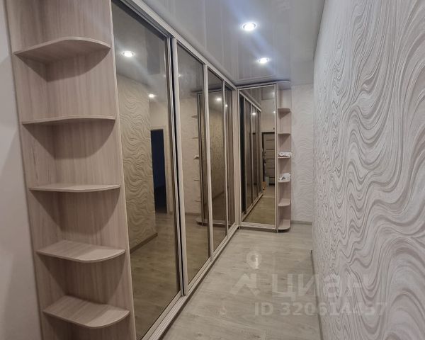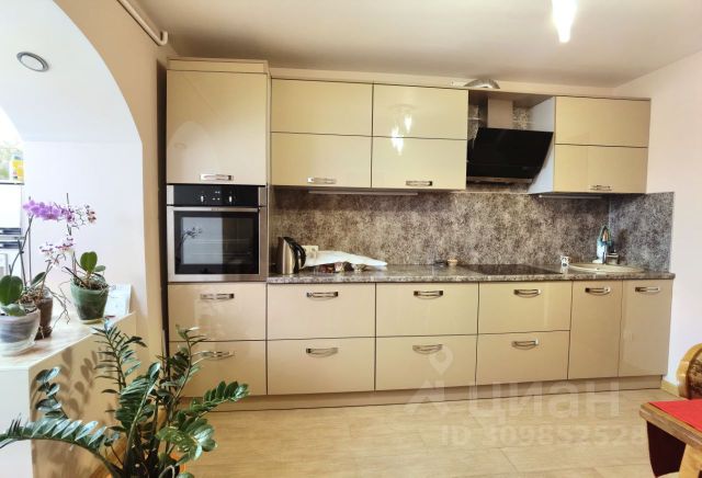 Встроенная кухня остаётся , кроме бытовой техники ( варочная панель, вытяжка, духовой шкаф). Окна: в комнатах установлены деревянные стеклопакеты, в комнате панорамная дверь выход на лоджию, на лоджиях пластиковые стеклопакеты, межкомнатные двери из массива дерева.