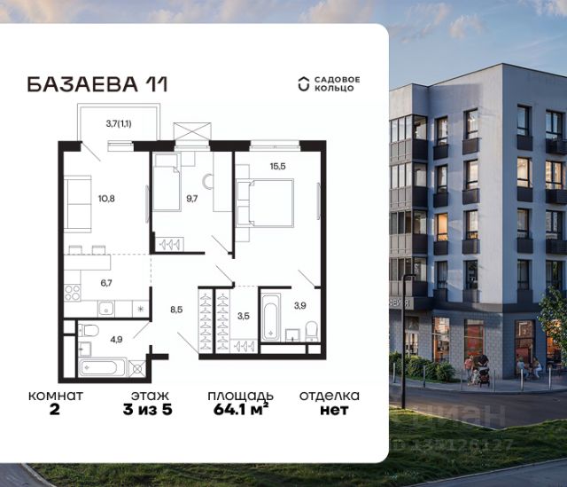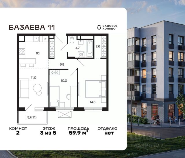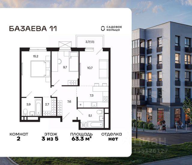 Продается квартира в ЖК "Базаева, 11" с 2 спальнями на 5 этаже 5 этажного дома. Общая площадь: 59 кв.м. Высота потолков 2.72 м. Срок сдачи 2 квартал 2027 г. Эскроу-счет. Застройщик ГК "Садовое кольцо". -Расположение Жилой комплекс в экологически чистом районе Московской области городском округе Шаховская. Камерное пятиэтажное здание находится в пешей доступности от всей необходимой инфраструктуры. Автостанция Шаховская расположена в 10 минутах от дома. Всего в 11 минутах ходьбы находится ж/д станция Шаховская, откуда удобно добраться электричкой до Рижского вокзала. Дорога до МКАД займет 1,5 часа на автомобиле. -Инфраструктура Проект расположен рядом с современным теннисным центром и Дворцом торжеств. В шаговой доступности — детская школа искусств, Шаховская гимназия, школа 1 и три детских сада. Всего за 3 минуты от дома можно дойти до Городского парка — здесь вас ждут аттракционы, верёвочный городок, тюбинговая горка и ресторан. Парк соседствует с живописным сквером у реки, украшенным подвесными мостами, ротондой и фонтанами. -Внутренний двор На территории проекта появится огороженная детская площадка, рассчитанная на детей всех возрастов, — с песочницей, канатным комплексом и зоной для игр. Для любителей активного образа жизни будет обустроена спортивная площадка с теннисным столом, турниками, тренажёрами и гимнастическими брусьями. Для автовладельцев на территории проекта предусмотрена удобная плоскостная парковка на 81 машино-место. -Архитектура Монохромное здание оформлено декоративным кирпичом и штукатуркой в тёплых светло-серых и насыщенных серых тонах. Эстетику фасада подчёркивают террасные ограждения и корзины для кондиционеров, выдержанные в единой цветовой гамме. -Входная группа Входные группы спроектированы на уровне земли — без ступеней и перепадов. Такой подход обеспечивает комфортный доступ в подъезд с коляской, чемоданом или велосипедом и подчеркивает продуманную архитектуру дома.