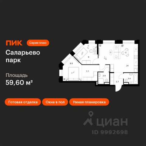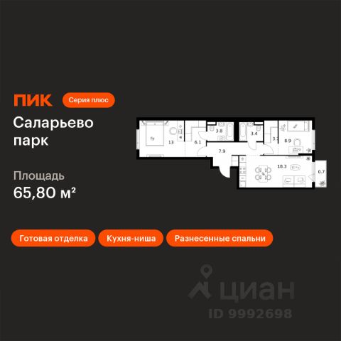 Продаётся 2-комн. квартира площадью 50,3 кв.м на 10 этаже 24 этажного дома (Корпус 82.4, Секция 4) проекта ПИК Саларьево парк. Светлый просторный подъезд на уровне земли, функциональная планировка, большие окна, предчистовая отделка. Жилой район "Саларьево парк" расположен в Новой Москве, в четырёх километрах от МКАД по Киевскому шоссе. Две станции метро: "Саларьево" и "Филатов луг", — находятся в пешей доступности от проекта. Дойти до них можно за 510 минут. В квартале уже создана качественная среда, где есть абсолютно всё для полноценной жизни, работы и отдыха. Благодаря удобному расположению проекта всё важное будет рядом: детские сады, школы, кафе и рестораны, шопинг в торговых центрах, фитнес и даже аэропорт. Все корпуса в квартале гармонично сочетаются, образуя единую городскую среду. Между собой их объединяет невысокая этажность и натуральная цветовая гамма. Здесь приятно гулять и проводить время на улице всей семьёй. В "Саларьево парке" создана уникальная образовательная среда, включающая в себя шесть школ, рассчитанных на 6 250 учеников. Две из них уже открыты, их посещает 2 300 детей. Также на территории "Саларьево парка" находится 12 детских садов, один из которых с бассейном. Сейчас уже открыты 7 садов. В "Саларьево парке" открыта уникальная игровая площадка — PlayHub "Оригами". Здесь есть ручей, горка-труба и рельефные холмы. Взрослые смогут отдохнуть в уютном кафе, пока дети играют. Также на территории проекта есть SportHub — большая спортивная зона, разделённая по интересам и возрастам. Здесь можно заниматься разными видами спорта: футболом, баскетболом, волейболом и стритболом. Зимой центральную часть площадки превращают в каток. Во дворах-парках жилого квартала есть места для отдыха, детские и спортивные площадки. На первых этажах домов расположены магазины, кафе и полезные сервисы. Также вблизи проекта есть несколько масштабных торговых центров. До ТЦ "Саларис" пять минут пешком, до "Рио", Metro Cash & Carry и "Леруа Мерлен" — пять минут на автомобиле. Артикул 1032603 (Застройщик ООО "Специализированный Застройщик "Тирон")