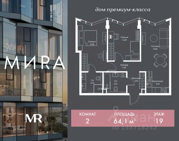 Прямая продажа от застройщика. Продаётся 2-комнатная квартира общей площадью 54.24 м² без отделки в доме премиум-класса МИRА на 5-м этаже 24 этажного дома. Квартира расположена в корпусе 3. Дом премиум-класса МИRA это: • Спокойный район с богатой историей и сложившейся инфраструктурой • Авторская архитектура на стыке классики и современности • Вход в парк прямо из жилого комплекса • Панорамные виды на Яузу, парки, ВДНХ и скульптуру "Рабочий и колхозница" • Удобные сервисы и безопасность для каждого резидента Расположение: Жилой квартал расположен в Алексеевском районе на северо-востоке Москвы, на второй линии домов, таким образом вы сможете дистанцироваться от шума и суеты проспекта Мира, но при этом будете жить недалеко от этой важной городской магистрали. Прямо у дома: • Парк Акведук • Река Яуза • Памятник "Рабочий и колхозница" Пешком: • 16 мин м. ВДНХ На автомобиле: • 12 мин ТТК • 15 мин Садовое кольцо • 12 мин Национальный парк "Лосиный остров" Благоустройство: Концепция благоустройства от бюро "ДРУЖБА" разработана в стиле "Лесная тропа". В уютном дворе расположились словно затерянные в лесу, площадки для отдыха. Они разделяются островками с травами, кустарниками, крупными камнями и деревьями, между которыми проходят узкие песчаные тропинки с деликатной подсветкой по вечерам. Центральной точкой притяжения для жителей станет главная площадь с фонтаном, которая открывается сразу из двух входных групп. Внутренний двор МИRA: • Детская площадка с зонами для игр малышей до трех лет и детей более старшего возраста • Спортивная площадка с профессиональным оборудованием для тренировок • Декоративные перголы • Воздушный арт-объект с подсветкой, похожий на облако • Чайный домик, где в отдельном отапливаемом павильоне можно в любое время года попить кофе с соседями или устроить камерное семейное чаепитие • Зоны для работы и отдыха с гамаком под навесом, скамейками и креслами Инфраструктура и окружение: В Алексеевском районе есть огромные благоустроенные парки, магазины, гимназии с высоким рейтингом и филиалы ВУЗов, частные и государственные детские сады, модные кофейни и фитнес-центры. В квартале МИRА предусмотрены: • 2 ресторана с видом на парк Акведук • 3 кафе • фитнес-студия • подземный паркинг на 330 машино-мест Компания MR предлагает своим клиентам специальные условия приобретения квартир в рамках программ ипотечного кредитования от банков-партнеров. Купить 2-комнатную квартиру в ипотеку в районе Алексеевский в Москве.