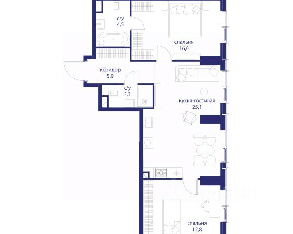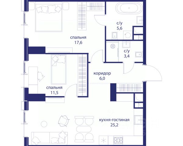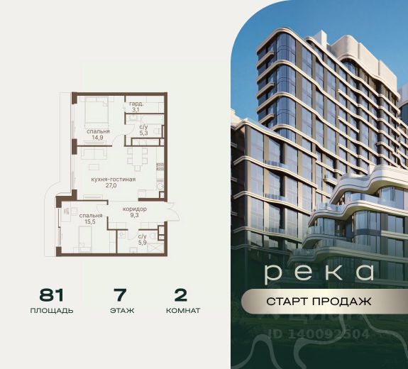 В продаже 2-к квартира от застройщика. Общая площадь 62.80, жилая 28.20, кухня 16.3. Квартира расположена на 2 этаже жилого квартала "Событие-6", корпус 1, Секция 1. Квартира без отделки. Срок сдачи: 4 кв. 2029 года. СОБЫТИЕ.6 — финальный дом парк-квартала СОБЫТИЕ на Мосфильмовской. Переезжайте в уже сформированный квартал с готовой инфраструктурой и парком! Премиальный жилой комплекс в престижном районе Москвы предлагает стильную архитектуру, продуманное благоустройство и великолепно разнообразие общественных пространств. Свой парк прямо возле дома! Архитектура Архитектура СОБЫТИЯ.6 выполнена в ультрасовременном стиле московским бюро Atrium на основе дизайн-кода британских архитекторов LDA Design и UHA London. Дом отличает оригинальная геометрия фасадов, большое остекление и высокие лобби (до 6,2 м) с авторской мебелью и светильниками. Расположение Мосфильмовская улица (Раменки) — один из престижных районов Москвы. Близость к историческому и деловому центру, природным зонам Запада столицы. Транспортная доступность: • 10 мин до Москва-Сити и ТТК; • 15 мин до Садового кольца; • 25 мин до аэропорта Внуково; • 7-10 мин до станций метро "Аминьевская" и "Мичуринский проспект". Инфраструктура: • парк "Событие" (12 га, финалист конкурса Правительства Москвы) с беговыми (1,5 км) и велодорожками (2,7 км), экотропой (1,6 км), площадками, лекторием; • школа, детский сад, магазины, салоны красоты, рестораны (к моменту заселения); • мультидвор с игровыми и спортивными площадками, мини-бульваром; • общественная терраса на 10-м этаже (коворкинг, лаунж); • Закрытые общественные пространства: детская комната, спортивный зал, коворкинг, лаунж-зоны. Паркинг 256 мест для жителей (48 — для электромобилей), 24 гостевых (5 — для электромобилей), мойки колес, кладовые, зоны для велосипедов. Окружение Парки и заповедники (Воробьёвы горы, Матвеевский лес и др.), МГУ, театр им. Н. И. Сац, стадион "Лужники". Безопасность Видеонаблюдение, контроль доступа, видеодомофоны, консьерж-сервис 24/7, системы пожарной безопасности и мультисервисная оптическая сеть.