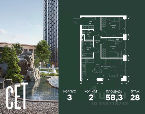 Прямая продажа от застройщика. В ЖК Сет продается 2-комнатная квартира площадью 51.28 м², расположенная в корпусе А, на 31 этаже 52 этажного дома. Сет имеет стратегически выгодное расположение в ЗАО, в районе с большой историей и блестящим будущим: между природной зоной долины реки Сетунь и Кутузовским проспектом. В рамках возведения первой очереди предусмотрено три корпуса высотой 18, 45 и 59 этажей. На верхних этажах спроектированы общедоступные смотровые площадки с панорамным обзором на центр столицы. Преимущества проекта: • Функциональные планировочные решения • Контроль проникновения через входную дверь • Система управления освещением и температурой в квартире • Система защиты от протечек с функцией перекрытия воды • Вход в подъезд по биометрическим считывателям Face ID • Скоростные лифты • Двухуровневый подземный охраняемый паркинг на 495 машино-мест Застройка Сет включает в себя не только жилые корпуса, но и инфраструктурные объекты. Все необходимое для повседневного комфорта будет расположено в шаговой доступности: • Фитнес-Клуб с бассейном • Ведущая городская школа, детский сад и школа искусств • Центр культуры и досуга • Медицинский центр • Кафе и рестораны Расположение комплекса: Пешком: • Метро "Давыдково" - 17 минут • Парк "Долина реки Сетунь" - 3 минуты • Открытие новых станций метро в шаговой доступности в будущем Инфраструктура: Разнообразить свой день резиденты Веер смогут также проводя больше времени на свежем воздухе. Двор разделен на 4 зоны разных эмоций и действий, которые пересечены и соединены веерными прогулочными маршрутами: • Спортивная площадка устроена в глубине "Кленовой рощи" • В "Чайном домике" будет создан навес с утеплением для отдыха в любую погоду • Площадки для детей воплотятся в "Волшебный лес" с цветами, зеркалами и световым дизайном • "Центральная площадь" устроена у водного оазиса живописного пруда. На машине: • "Москва-Сити" - 15 минут • Садовое кольцо - 20 минут • ТЦ "Океания" - 8 минут • ТЦ "Времена года" - 13 минут • Сколково - 12 минут • Гребной канал - 17 минут Компания MR предлагает своим клиентам специальные условия приобретения квартир в рамках программ ипотечного кредитования от банков-партнеров.