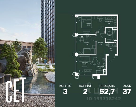 Прямая продажа от застройщика. В ЖК Сет продается 2-комнатная квартира площадью 51.28 м², расположенная в корпусе А, на 31 этаже 52 этажного дома. Сет имеет стратегически выгодное расположение в ЗАО, в районе с большой историей и блестящим будущим: между природной зоной долины реки Сетунь и Кутузовским проспектом. В рамках возведения первой очереди предусмотрено три корпуса высотой 18, 45 и 59 этажей. На верхних этажах спроектированы общедоступные смотровые площадки с панорамным обзором на центр столицы. Преимущества проекта: • Функциональные планировочные решения • Контроль проникновения через входную дверь • Система управления освещением и температурой в квартире • Система защиты от протечек с функцией перекрытия воды • Вход в подъезд по биометрическим считывателям Face ID • Скоростные лифты • Двухуровневый подземный охраняемый паркинг на 495 машино-мест Застройка Сет включает в себя не только жилые корпуса, но и инфраструктурные объекты. Все необходимое для повседневного комфорта будет расположено в шаговой доступности: • Фитнес-Клуб с бассейном • Ведущая городская школа, детский сад и школа искусств • Центр культуры и досуга • Медицинский центр • Кафе и рестораны Расположение комплекса: Пешком: • Метро "Давыдково" - 17 минут • Парк "Долина реки Сетунь" - 3 минуты • Открытие новых станций метро в шаговой доступности в будущем Инфраструктура: Разнообразить свой день резиденты Веер смогут также проводя больше времени на свежем воздухе. Двор разделен на 4 зоны разных эмоций и действий, которые пересечены и соединены веерными прогулочными маршрутами: • Спортивная площадка устроена в глубине "Кленовой рощи" • В "Чайном домике" будет создан навес с утеплением для отдыха в любую погоду • Площадки для детей воплотятся в "Волшебный лес" с цветами, зеркалами и световым дизайном • "Центральная площадь" устроена у водного оазиса живописного пруда. На машине: • "Москва-Сити" - 15 минут • Садовое кольцо - 20 минут • ТЦ "Океания" - 8 минут • ТЦ "Времена года" - 13 минут • Сколково - 12 минут • Гребной канал - 17 минут Компания MR предлагает своим клиентам специальные условия приобретения квартир в рамках программ ипотечного кредитования от банков-партнеров.