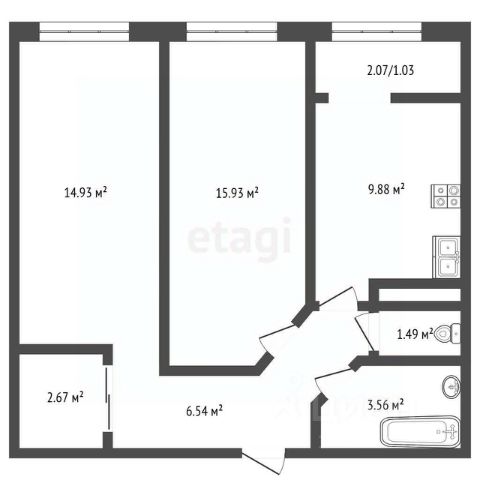 Продаётся 2-комнатная квартира 58, площадью 33,50 м², на 5 этаже в ЖК "Аникеевский" корпус 1.1. Стоимость — от 7155714 руб. Квартира без отделки, планировка угловая, окна на улицу.