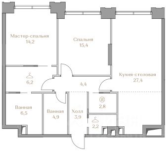 Гибкие программы рассрочки: 0% без переплат и удорожания; первый взнос от 10%. • Максимально удобное, глубоко продуманное, эргономичное планировочное решение • Просторный холл • Все комнаты изолированы друг от друга • Наличие гостевого санузла с нишей под стиральную и сушильную машины • Мастер-спальня площадью более 18,5 кв. м с двумя панорамными окнами, приватным санузлом и нишей для хранения вещей • Функциональная малая спальня с двумя окнами • Большая кухня-гостиная (более 21 кв. м) с выделенной обеденной зоной у панорамного окна и кухонным островом О проекте FIVE TOWERS — первый жилой небоскрёб на Ленинском проспекте и самый высокий дом столицы за пределами делового кластера "Москва-Сити". Премиальный небоскрёб представляет собой ультрасовременное, высокотехнологичное здание, идеальный синтез стилей культовых высоток Москвы и небоскребов Нью-Йорка и поражает воображение уникальными видами, монументальной роскошью и совершенством форм. Величественная панорама, открывающаяся из окон вашей квартиры, завораживает: легендарные сталинские высотки, шпиль главного корпуса МГУ, "Москва-Сити", спорткомплекс "Лужники". Окружение 75-этажный жилой комплекс премиум-класса расположен в историческом Донском районе. Транспортная инфраструктура проекта сделает жизнь резидентов FIVE TOWERS комфортной и продуманной: удобные выезды на ТТК и Садовое кольцо, 10 минут до метро "Ленинский проспект", 11 минут на МЦК до Москва-Сити. Рядом расположены крупные деловые и бизнес-центры, а в шаговой доступности — 500 га парков, образуемых Музеоном, Парком Горького и парком "Воробьевы горы". Инфраструктура Архитектурное бюро Олега Клодта разработало дизайн общественных пространств FIVE TOWERS: гранд-лобби, камерную библиотеку c камином и лифтовую зону. Все необходимые сервисы сосредоточены на первых этажах небоскрёба: кафе, винотека, салон красоты, фитнес и детский клуб. Приватный Sky Club 49 — респектабельный лаундж с открытой террасой и ограниченным доступом на 49 этаже — только для резидентов. Квартиры в FIVE TOWERS Все квартиры в FIVE TOWERS будут сданы с предчистовой отделкой (white box). Это позволит будущим резидентам комплекса сосредоточиться на творческой части ремонта, не связанной с организацией черновых работ. В жилом небоскребе FIVE TOWERS запланировано 596 премиальных квартир и 87 типов планировочных решений, которые можно адаптировать под личные запросы и сценарии проживания. В комплексе премиум-класса представлены не только двух- и трехкомнатные квартиры с угловым остеклением, но и однокомнатные с видом на две стороны и трехкомнатные квартиры с видами на три стороны, что является редким предложением на рынке недвижимости. 2-комнатная квартира в ипотеку рядом с метро Ленинский проспект.