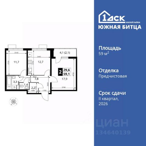 Прямая продажа от застройщика! Семейный жилой район класса Комфорт Плюс Продаётся 2-к квартира номер 466 общей площадью 59.1 кв.м. на 9-м этаже 22 этажного здания. Отделка Whitebox. Особенности квартиры: - Линейная планировка - максимальная функциональность и удобство. - Гостевой санузел - комфорт и удобство для ваших гостей. - Раздельный санузел - больше удобства для всех членов семьи. - Просторная кухня - место для семейных ужинов и кулинарных экспериментов. - Гардеробная - удобство для хранения и организации вещей. - Лоджия - уютное место для отдыха и тишины. Квартира с предчистовой отделкой (White box). Вам не придется заниматься черновыми и трудоёмкими работы, а чистовую отделку и дизайн - сделайте на свой вкус. Информация о комплексе: Сочетание свободного перемещения по внутреннней территории без машин и ощущения абсолютной безопасности благодаря надежным ограждениям - вот что отличает ЖК Южная Битца. На территории комплекса созданы все условия как для активного образа жизни, так и для спокойного времяпрепровождения. Свободно перемещайтесь по внутренней территории в безбарьерной среде! Продуманное зонирование во дворах позволяет отделить тихие зоны для родителей со спящими младенцами и тех, кто хочет почитать на свежем воздухе, от шумных игровых зон. Игровые зоны учитывают возраст детей. Площадки для детей старшего возраста вынесены за пределы дворов. Ощущение уютного дома должно начинаться с подъезда. Мы постарались предусмотреть все нюансы, чтобы наши лифты отвечали самым строгим современным требованиям. А наличие кладовых позволит вам поддерживать идеальный порядок и уют в вашей квартире! Транспортная доступность: В 3 км от МКАД в нескольких минутах езды до трех станций метро: Аннино, Бульвар Дмитрия Донского, улица Старокочаловская и станции МЦД2 - жд Бутово. Внутренняя инфраструктура: Для жителей жилого района "Южная Битца" доступна развитая инфраструктура близлежащих московских районов Чертаново, Южное, Бирюлёво Западное, Северное Бутово и Южное Бутово. Множество образовательных учреждений, объекты здравоохранения, торговые и развлекательные центры, кинотеатры, кафе, рестораны, парки. 2-комнатная квартира в ипотеку рядом с метро Лесопарковая.