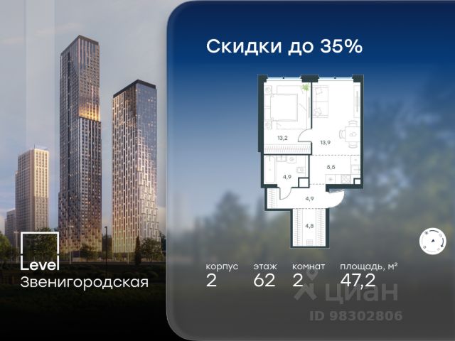 Река. Парк. Сити. Готовый дом в идеальном месте. Продается 2-комнатная квартира на 13 этаже с панорамным остеклением и видом на Береговой пр-д. Береговой — квартал-курорт в центре столицы. Готовый дом на первой линии Москвы-реки. Пешеходная набережная начинается прямо от дома — никаких дорог между вами и рекой. Уникальное сочетание природы парка Фили и ритма Сити. Ключи от нового образа жизни в Береговом: • 12 террас на крышах — ваши виды на Москву с высоты птичьего полета • Пешеходная набережная прямо у дома — ни одной машины между вами и рекой • Лобби с камином, переговорной и консьерж-сервисом • Флагманский Encore Fitness — самый большой в сети (4700 м²) с бассейном, термами и спа-комплексом • Детство на берегу Москвы-реки — в рамках проекта будут построены две школы и детский сад рядом с домом • Гастрономическая набережная: рестораны и премиум-сервисы откроются на первых этажах • Причал "Береговой" рядом с домом — путешествуйте по городу, пока другие стоят в пробках • Безопасность и уединение: контроль доступа на территорию, видеонаблюдение и круглосуточная диспетчерская • Двухуровневый подземный паркинг и кладовые Безупречная квартира для жизни: • Пространство света и воздуха: панорамные окна и высокие потолки 3.2 м • Технологии: центральное кондиционирование и роботизированная система очистки фасадов — вид из окна всегда будет идеальным • Совершенство планировки: просторная кухня-гостиная, минимум коридоров, максимум полезной площади • Квартира без отделки — возможность раскрыть преимущества планировки в вашем уникальном интерьере. Или выбирайте свою версию идеального дома в коллекции планировок: • С изолированными спальнями • Мастер-спальнями с гардеробными и ванными • Видовые ванные комнаты • Функциональные постирочные Эксклюзивные лоты: • Пентахусы с приватными террасами • Двухуровневые пентхаусы Локация, о которой мечтают 15 минут до Сити на машине — и вы в эпицентре деловой жизни. Две станции метро в пешей доступности — когда каждая минута на счету. Утром — пробежка по парку Фили, вечером — прогулка на велосипеде вдоль реки, выходные — водный спорт в Крылатском. Речные трамвайчики вместо такси, зеленые парки и благоприятная экология — привилегии престижного ЗАО Москвы. Условия покупки: выгодные программы покупки от застройщика, специальные условия при полной оплате. Оставляйте заявку на персональную презентацию в шоу-руме.