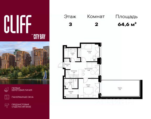 Прямая продажа от застройщика. Продаётся 2-комнатная квартира общей площадью 52.40 м² с предчистовой отделкой в ЖК Сити Бэй на 29-м этаже 53 этажного дома. Концепция жилого комплекса Сити Бэй - настоящий город в городе с отлично развитой инфраструктурой и собственной благоустроенной набережной. На территории жилого комплекса расположено пять кварталов - Atlantic, Pacific, Indian, North, Cliff. Жилой квартал Сити Бэй отличается оригинальной концепцией и выделяется среди других проектов такими характеристиками как: - Архитектура, - Виды из окон, - Природное окружение, вызывая гордость у жителей и восхищение у прохожих. Вся жизнь района Покровское-Стрешнево строится вокруг водных объектов: - Пойма реки Сходни с уникальной экосистемой, - Речка Химка и Химкинское водохранилище, - Москва-река, - Канал имени Москвы. Кругом вода, и местные с удовольствием этим пользуются. А сразу за рекой - центр водного спорта в Строгино с вейк-парком и яхт-клубами. Помимо воды, здесь очень много зелени: - Рядом Сходненский ковш памятник природы, естественный амфитеатр глубиной 40 метров; - Парк при усадьбе Братцево с фруктовым садом; - Дубовая роща "Маяк", - Алешкинский лес; - Лесопарк Покровское-Стрешнево с пляжами и бобрами. Главные транспортные артерии района: - Волоколамское шоссе, - Таганско-Краснопресненская линия метро и МЦД-2. Всего за 20 минут можно добраться до центра на машине или метро, а МЦД связывает ЖК Сити Бэй с северными, восточными и юго-восточными районами. Компания MR предлагает своим клиентам специальные условия приобретения квартир в рамках программ ипотечного кредитования от банков-партнеров.