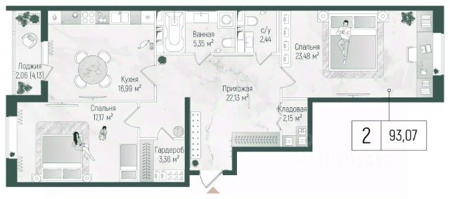 Продаётся 2-комнатная квартира 154, площадью 57,88 м², на 23 этаже в ЖК "Ильинойс" корпус 3. Стоимость — от 14784163 руб. Квартира без отделки, планировка распашная, окна во двор.