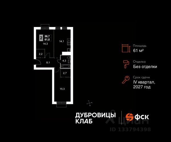 Общая площадь квартиры — 56.5 кв. М., жилая — 25 кв. М., 15/12 — комнаты, кухня — 10кв. М, раздельный санузел, коридор 12 кв. На кухне — теплый пол, эргономичный кухонный гарнитур Икеа с фасадами из шпона (классика), бесшумные вместительные ящики. Темный пол в ванной, в санузле предусмотрен боллер на 100 литров. Система хранения в коридоре — гардеробная, отгороженная зеркальными дверями, которые увеличивают дополнительно пространство.