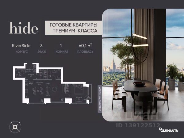 Прямая продажа от застройщика. Продается 2-комнатная квартира площадью 42.7 кв.м. на 8-м этаже 34-этажного дома в ЖК hideOUT с панорамными видами: Во двор. Высота потолков 3,25 м. hideOUT — премиальный проект компании Dominanta. Это новый уровень жизни и комфорта без компромиссов. Две башни — 34 и 49 этажей — открывают захватывающие виды на Москву. Архитектурной доминантой проекта становится мост, соединяющий башни на высоте 80 метров. Закрытая территория, охрана 24/7, зона экстренной безопасности на подземном уровне, система пожаротушения. На мосту между башнями на 22-м этаже находится SocialHUB — предусмотрено 16 комфортных пространств для работы, отдыха и развлечений с панорамными видами и клубным форматом доступа. Концепция благоустройства hideOUT — баланс между природой и технологичным городом будущего. На территории сада предусмотрены 15 зон для отдыха, работы, спорта и детей. Знаковым местом станет центральная площадь с амфитеатром и водопадом — сочетание камней, растений и струящейся воды создает идеальный баланс с природой. В проекте действуют привлекательные условия покупки: - скидка до 20% при 100% оплате стоимости лота и ипотеке без субсидирования. Предложение действует до 28.02.2026. - рассрочка 0% на 12 месяцев с первоначальным взносом 30% / на 18 месяцев с первоначальным взносом 50%. Застройщик АО "СЗ "ХАЙДАУТ", ИНН 7729058636, ОГРН 1027739319420. Проектная декларация на сайте наш.дом.рф. Предложение не является публичной офертой.