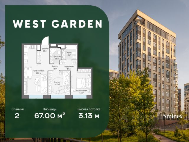 В квартире функциональная продуманная планировка, включающая в себя выделенную спальню с отдельной вместительной гардеробной, гостиная комната и полностью оборудованная качественной техникой кухня и дизайнерский санузел с полноценной ванной.