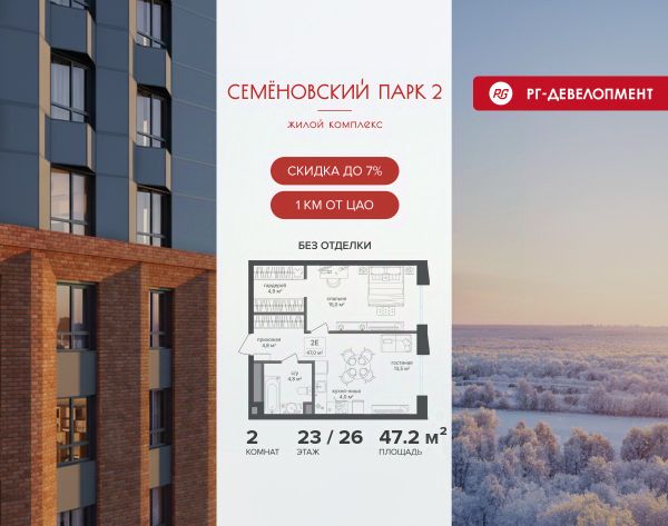 Продажа 2-комнатных квартир в ипотеку рядом с метро Семёновская