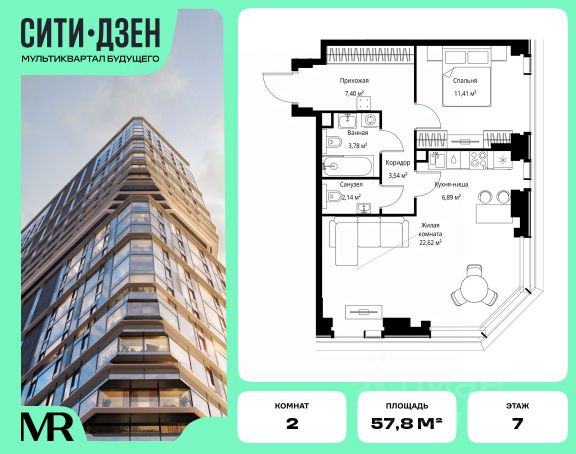Продается 2-комнатная квартира от застройщика в жилом мультиквартале СИТИДЗЕН на 7-м этаже. Общая площадь лота составляет 56.89 м² СИТИДЗЕН — это большой город в миниатюре. Инфраструктура мультиквартала организована по принципу шаговой доступности от подъезда до любой нужной точки: супермаркета, кофейни, салона красоты, фитнес-центра и др. В домах представлены лобби с атмосферой премиального резорта, дизайн которых вдохновлен французскими интерьерами 1960-х годов. Концепция благоустройства территории мультиквартала предусматривает большое количество вечнозеленых растений, что создает ощущение максимальной близости к природе. Жителей квартала ждут места для отдыха, игр, занятий спортом и прогулок с домашними питомцами. В приватном дворе с собственным садом предусмотрена зеленая комьюнити-гостиная для дружеского отдыха и общения, одна из стен которой подходит для кинопроекций, а также зеленый рабочий кабинет в саду (бизнес-гардена), оборудованный wi-fi станцией и usb-разъёмами для зарядки устройств. Маленьких жителей ждут авторские игровые площадки для разных возрастных групп (от 0 до 12 лет). Компания MR предлагает своим клиентам специальные условия приобретения квартир в рамках программ ипотечного кредитования от банков-партнеров.