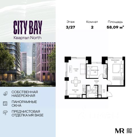 Прямая продажа от застройщика. Продаётся 2-комнатная квартира общей площадью 53.20 м² без отделки в ЖК City Вау, квартале Pacific, на 16-м этаже 18 этажного дома. Концепция жилого комплекса City Вау - настоящий город в городе с отлично развитой инфраструктурой и собственной благоустроенной набережной. На территории жилого комплекса расположено пять кварталов - Atlantic, Pacific, Indian, North, Cliff. Жилой квартал City Вау отличается оригинальной концепцией и выделяется среди других проектов такими характеристиками как: - Архитектура, - Виды из окон, - Природное окружение, вызывая гордость у жителей и восхищение у прохожих. Вся жизнь района Покровское-Стрешнево строится вокруг водных объектов: - Пойма реки Сходни с уникальной экосистемой, - Речка Химка и Химкинское водохранилище, - Москва-река, - Канал имени Москвы. Кругом вода, и местные с удовольствием этим пользуются. А сразу за рекой - центр водного спорта в Строгино с вейк-парком и яхт-клубами. Помимо воды, здесь очень много зелени: - Рядом Сходненский ковш памятник природы, естественный амфитеатр глубиной 40 метров; - Парк при усадьбе Братцево с фруктовым садом; - Дубовая роща "Маяк", - Алешкинский лес; - Лесопарк Покровское-Стрешнево с пляжами и бобрами. Главные транспортные артерии района: - Волоколамское шоссе, - Таганско-Краснопресненская линия метро и МЦД-2. Всего за 20 минут можно добраться до центра на машине или метро, а МЦД связывает ЖК City Вау с северными, восточными и юго-восточными районами. Компания MR Group предлагает своим клиентам специальные условия приобретения квартир в рамках программ ипотечного кредитования от банков-партнеров.