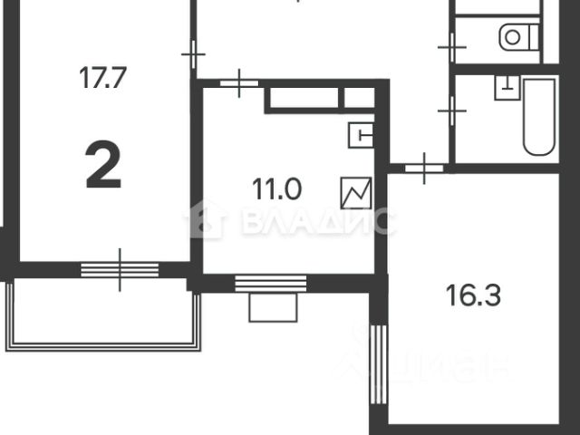 Квартира имеет московскую прописку. Важно отметить, что второй собственник (владеющий 1/3 доли) в квартире не проживает.