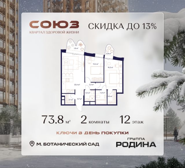 Прямая продажа от застройщика. Продаётся 2-комнатная квартира общей площадью 53.93 м² без отделки в доме премиум-класса МИRА на 3-м этаже 24 этажного дома. Квартира расположена в корпусе 3. Дом премиум-класса МИRA это: • Спокойный район с богатой историей и сложившейся инфраструктурой • Авторская архитектура на стыке классики и современности • Вход в парк прямо из жилого комплекса • Панорамные виды на Яузу, парки, ВДНХ и скульптуру "Рабочий и колхозница" • Удобные сервисы и безопасность для каждого резидента Расположение: Жилой квартал расположен в Алексеевском районе на северо-востоке Москвы, на второй линии домов, таким образом вы сможете дистанцироваться от шума и суеты проспекта Мира, но при этом будете жить недалеко от этой важной городской магистрали. Прямо у дома: • Парк Акведук • Река Яуза • Памятник "Рабочий и колхозница" Пешком: • 16 мин м. ВДНХ На автомобиле: • 12 мин ТТК • 15 мин Садовое кольцо • 12 мин Национальный парк "Лосиный остров" Благоустройство: Концепция благоустройства от бюро "ДРУЖБА" разработана в стиле "Лесная тропа". В уютном дворе расположились словно затерянные в лесу, площадки для отдыха. Они разделяются островками с травами, кустарниками, крупными камнями и деревьями, между которыми проходят узкие песчаные тропинки с деликатной подсветкой по вечерам. Центральной точкой притяжения для жителей станет главная площадь с фонтаном, которая открывается сразу из двух входных групп. Внутренний двор МИRA: • Детская площадка с зонами для игр малышей до трех лет и детей более старшего возраста • Спортивная площадка с профессиональным оборудованием для тренировок • Декоративные перголы • Воздушный арт-объект с подсветкой, похожий на облако • Чайный домик, где в отдельном отапливаемом павильоне можно в любое время года попить кофе с соседями или устроить камерное семейное чаепитие • Зоны для работы и отдыха с гамаком под навесом, скамейками и креслами Инфраструктура и окружение: В Алексеевском районе есть огромные благоустроенные парки, магазины, гимназии с высоким рейтингом и филиалы ВУЗов, частные и государственные детские сады, модные кофейни и фитнес-центры. В квартале МИRА предусмотрены: • 2 ресторана с видом на парк Акведук • 3 кафе • фитнес-студия • подземный паркинг на 330 машино-мест Компания MR предлагает своим клиентам специальные условия приобретения квартир в рамках программ ипотечного кредитования от банков-партнеров. Продается 2-комнатная квартира в ипотеку рядом с метро ВДНХ.