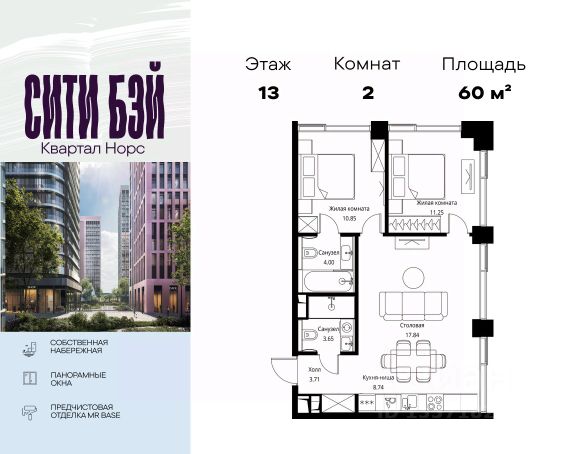 Прямая продажа от застройщика. Продаётся 2-комнатная квартира общей площадью 51.67 м² с предчистовой отделкой в ЖК Сити Бэй на 8-м этаже 53 этажного дома. Концепция жилого комплекса Сити Бэй - настоящий город в городе с отлично развитой инфраструктурой и собственной благоустроенной набережной. На территории жилого комплекса расположено пять кварталов - Атлантик, Пасифик, Индиан, Норс, Клиф. Жилой квартал Сити Бэй отличается оригинальной концепцией и выделяется среди других проектов такими характеристиками как: - Архитектура, - Виды из окон, - Природное окружение, вызывая гордость у жителей и восхищение у прохожих. Вся жизнь района Покровское-Стрешнево строится вокруг водных объектов: - Пойма реки Сходни с уникальной экосистемой, - Речка Химка и Химкинское водохранилище, - Москва-река, - Канал имени Москвы. Кругом вода, и местные с удовольствием этим пользуются. А сразу за рекой - центр водного спорта в Строгино с вейк-парком и яхт-Клубами. Помимо воды, здесь очень много зелени: - Рядом Сходненский ковш памятник природы, естественный амфитеатр глубиной 40 метров; - Парк при усадьбе Братцево с фруктовым садом; - Дубовая роща "Маяк", - Алешкинский лес; - Лесопарк Покровское-Стрешнево с пляжами и бобрами. Главные транспортные артерии района: - Волоколамское шоссе, - Таганско-Краснопресненская линия метро и МЦД-2. Всего за 20 минут можно добраться до центра на машине или метро, а МЦД связывает ЖК Сити Бэй с северными, восточными и юго-восточными районами. Компания MR предлагает своим клиентам специальные условия приобретения квартир в рамках программ ипотечного кредитования от банков-партнеров.