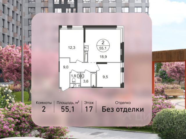 Продается двухкомнатная квартира без отделки в 9 фазе города-парка "Первый Московский". Общая площадь квартиры - 51,5 кв. м, этаж 4 из 19. Срок сдачи - 2 квартал 2027 года. Тип дома - монолитный. ТОЛЬКО ДО 31 МАРТА выгодные условия на приобретение квартиры в ипотеку или рассрочку. Звоните - и мы подберем оптимальное предложение под ваш запрос! Корпус состоит из 3 секций. Город-парк "Первый Московский" расположен всего в 7 км по Киевскому шоссе от МКАД на территории Новой Москвы. Из города-парка прямой выезд на Киевское шоссе и трассу Солнцево-Бутово-Варшавское шоссе. ТРАНСПОРТНАЯ ДОСТУПНОСТЬ: - 5 мин. на личном автомобиле или 10 мин. на автобусе 189, 147, 193 до станции метро "Филатов Луг" - 5 мин. на личном автомобиле или 12 мин. на автобусе 863 до станции метро "Саларьево" - 6 мин. на личном автомобиле или 15 мин. на автобусе 333 до станции метро "Рассказовка" РАЗВИТАЯ ИНФРАСТРУКТУРА В ОКРУЖЕНИИ: - общеобразовательная школа 2120 (корпуса д1, д7, ш1-ш5) - детский сад 2120 (корпуса д2, д9) - школа искусств - городская больница, детская поликлиника, филиал 5 - подстанция скорой помощи 58 и пожарно-спасательный центр 313 - отдел полиции, отдел ГИБДД - торговые центры "Столица" и "Новомосковский" - стадион, каток, бассейн - кафе, продуктовые магазины, аптеки, фитнес-центры, салоны красоты и пр. БЛАГОУСТРОЙСТВО: - дворы без машин - разнообразные детские площадки и развивающие комплексы - детские площадки разделены по возрастным группам - максимальная близость корпуса к парку "Филатов луг" - озеленение территории с учетом зонирования, островками для отдыха ОСОБЕННОСТИ АРХИТЕКТУРЫ: - безбарьерные входные группы - велопарковка на -1 этаже - колясочные в каждой входной группе - коммерческие помещения на 1 этаже в трех секциях - кладовые помещения расположены на жилых этажах и на -1 этаже - в каждой секции корпуса - 4 лифта: 2 пассажирских, 2 грузовых - видеонаблюдение установленное в холлах первых этажей, у подъездов и на прилегающей территории АВТОРСКИЙ ДИЗАЙН: Входные группы выполнены по авторскому дизайну, оснащены системой "тёплый пол". В каждой входной группе будет располагаться комфортабельная зона ожидания, почтовые ящики с ячейкой для спама, колясочная, акцентные пуфы и столик.