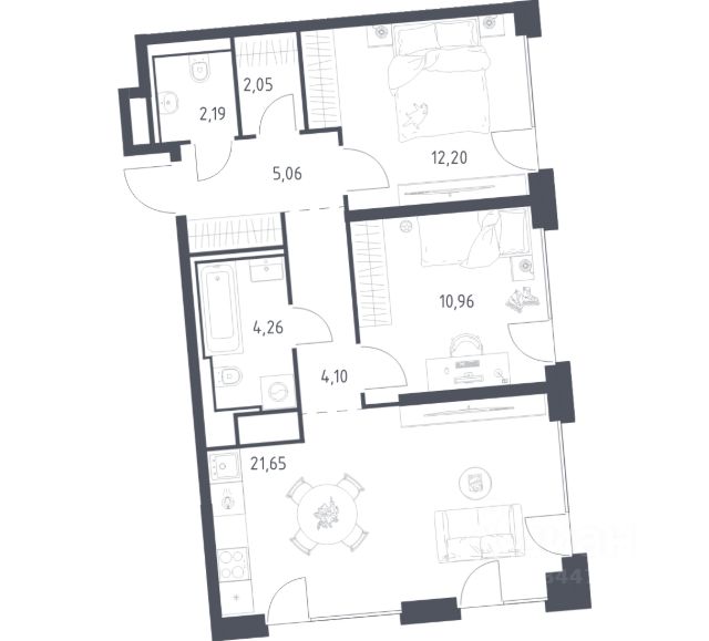 В динамично развивающемся районе Москвы, всего в 300 метрах от метро и в пешей близости от нового городского порта с протяженной набережной 13 км, свободной от автомобилей, продается 2-комнатная квартира площадью 51.30 м². без отделки. Квартира находится в корпусе жилого комплекса бизнес-класса "Адмирал", расположенного по адресу г. Москва, ул. Шоссейная, 4Д. (Застройщик - "Галс Девелопмент"). Новый амбициозный проект "Адмирал" станет частью одного из самых перспективных районов будущего - "Сити-2". В пешей доступности от современных башен Вас ждут живописные Люблинские пруды, 2 усадьбы с уникальной историей и уютный парк "Печатники" у Перервинского плёса. Район имеет отличную транспортную доступность: • 300 метров до станции метро "Печатники"; • Удобная пересадка на БКЛ и станцию МЦД-2; • 10 минут на машине до ТТК; • 15 минут до Садового кольца. Архитектура корпусов отличается динамичностью облика благодаря переменной этажности: высокие башни сочетаются с домами средней этажности. Изящным украшением становятся арочные витражи. Интеллигентный и современный стиль "Адмирала" продолжается в гранд-лобби: пастельные оттенки интерьера и фактурные элементы декора создают атмосферу безмятежного отдыха, особое ощущение простора дарят высокие потолки до 4 м и витражные окна. В домах предусмотрено от трех до шести скоростных лифтов, каждый из них спускается на любой этаж подземного паркинга и обладает удобными сенсорными панелями управления и низким уровнем шума. Благоустроенный двор площадью 5000 кв.м. украсят десятки видов гипоаллергенных растений. Здесь можно совершить приятный променад, по пути заглядывая за свежезаваренным кофе, уединиться за ноутбуком в комфортном коворкинге, занять ребенка играми в двухъярусном плейхабе или помедитировать на специальной площадке для йоги. Мягкий свет декоративных фонарей подчеркнет живописность местности, а чувство безопасности гарантируют круглосуточные системы видеонаблюдения. Дополнительные преимущества: • Высокие потолки от 2,9 до 3,25 м; • Бизнес-центр, школа и детский сад прямо на территории дома; • Подземный двухуровневый паркинг на 1955 машино-мест; • Кладовые помещения в тёплом контуре на 2м этаже; • Стрит-ритейл на первых этажах. Продается 2-комнатная квартира в ипотеку в районе Печатники в Москве.