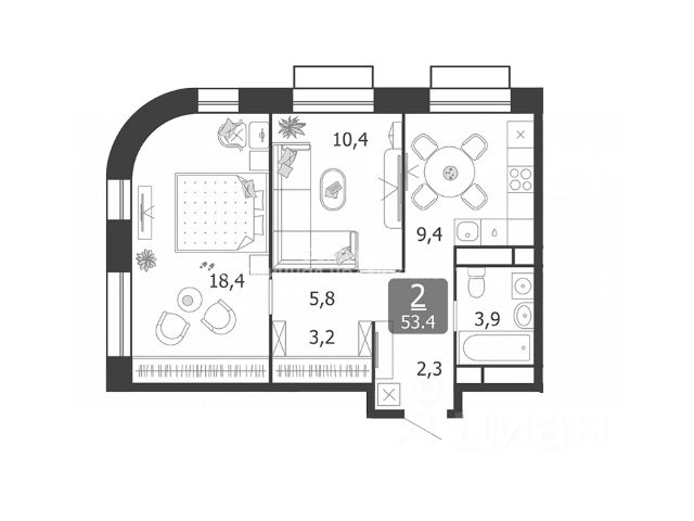 Продается квартира 714, по адресу г. Москва, ЮАО, Даниловский, ул. Автозаводская, вл. 23/75, корпус Жилой квартал Shagal, 3 очередь, 5 этап, корпус 9 в Shagal на 8 этаже, с площадью 57.5 м2.