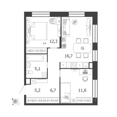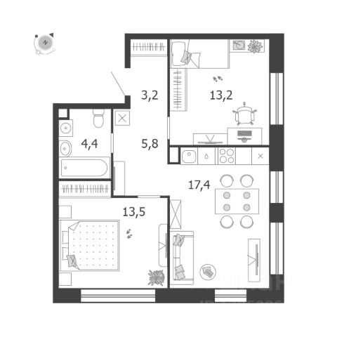 Продается квартира 118, по адресу г. Москва, ЮАО, Даниловский, ул. Автозаводская, вл. 23/75, корпус Жилой квартал Shagal, 3 очередь, 5 этап, корпус 5 в Shagal на 5 этаже, с площадью 57.7 м2.