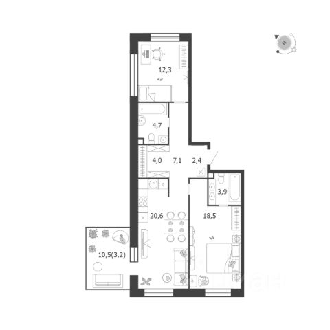 Продается квартира 461, по адресу г. Москва, ЮАО, Даниловский, ул. Автозаводская, вл. 23/75, корпус Жилой квартал Shagal, 3 очередь, 5 этап, корпус 6 в Shagal на 18 этаже, с площадью 68.5 м2.